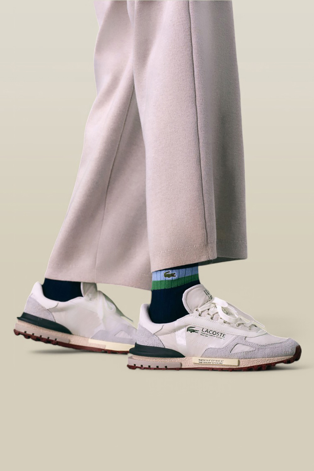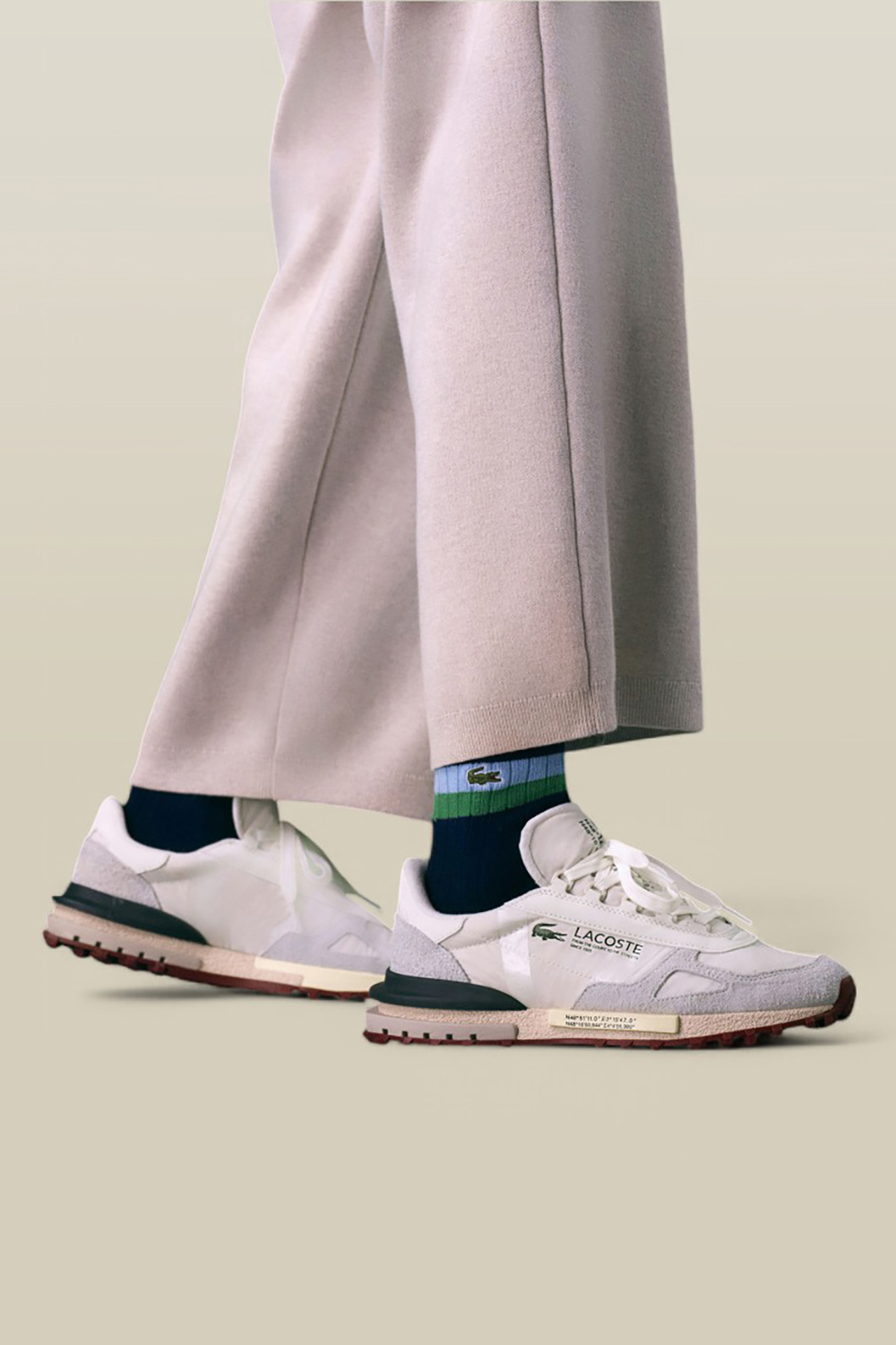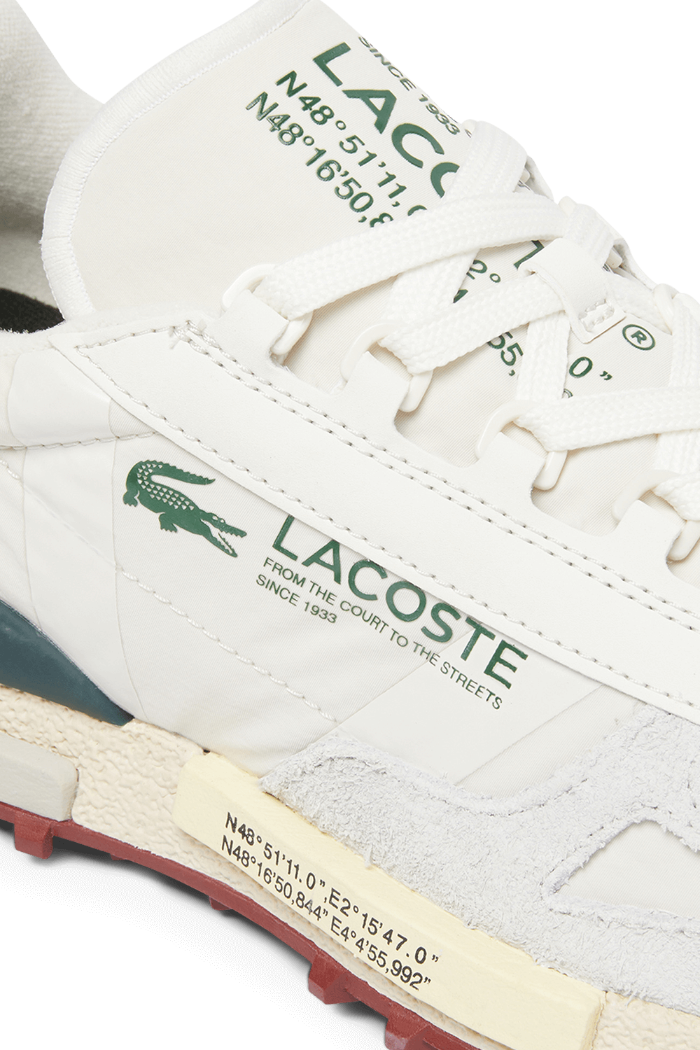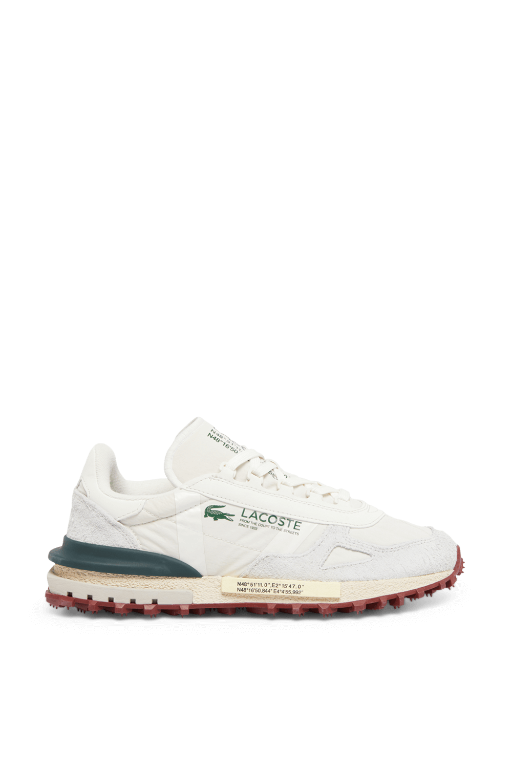 נעלי סניקרס דגם Elite Active מבית Lacoste, המעוצבות בסגנון וינטג', בהשראת ארכיון המותג. הן עשויות ניילון וזמש עם הדפס לוגו בצד.