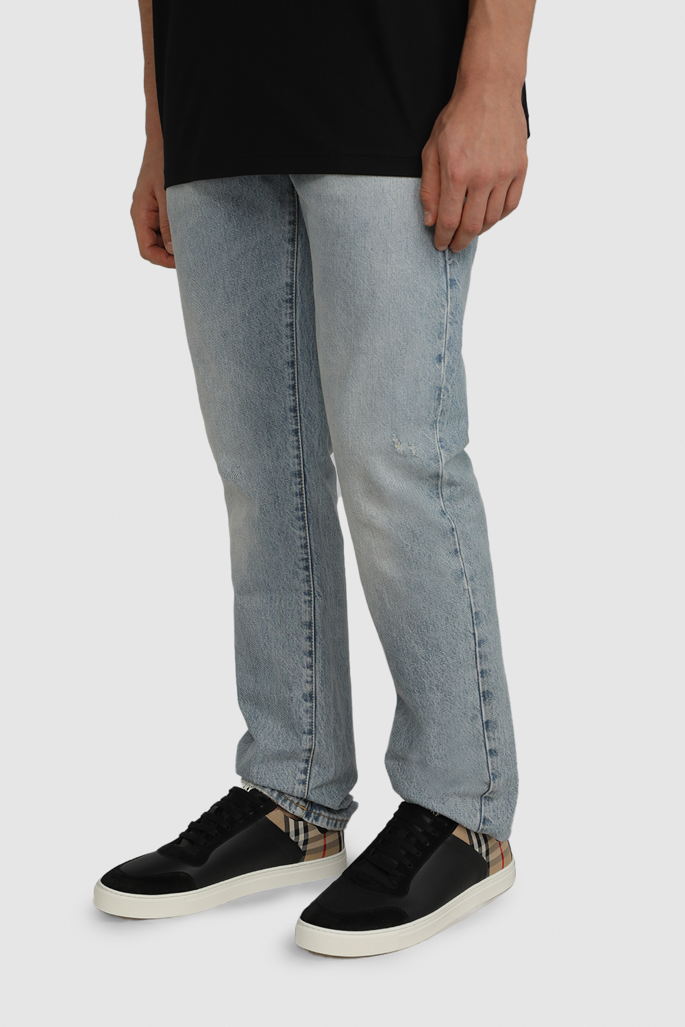 נעלי סניקרס ברכיסה נמוכה מבית Burberry, עשויות עור בצבע שחור בשילוב הדפס המשבצות האייקוני של המותג וזמש בחזית, מאחור ולשונית.