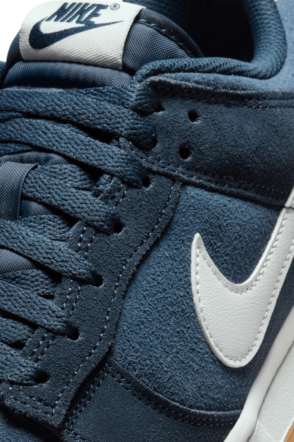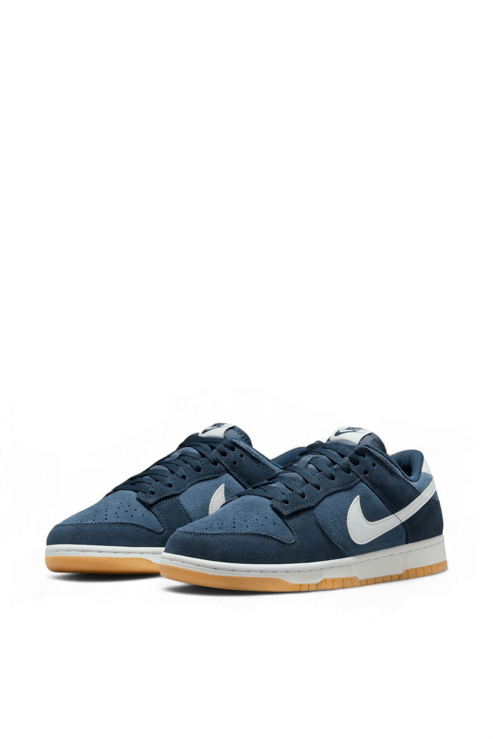 נעלי סניקרס מדגם Dunk Low מבית Nike Nbhd. הן עשויות עור בגווני כחול, בשילוב עיצוב מחורר בחזית עם לוגו המותג בצדדים עם סוליה בריפוד קל, כשהן מעוצבות בהשראת מראה וינטג' משנות ה-80.