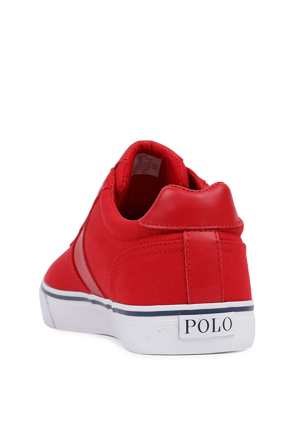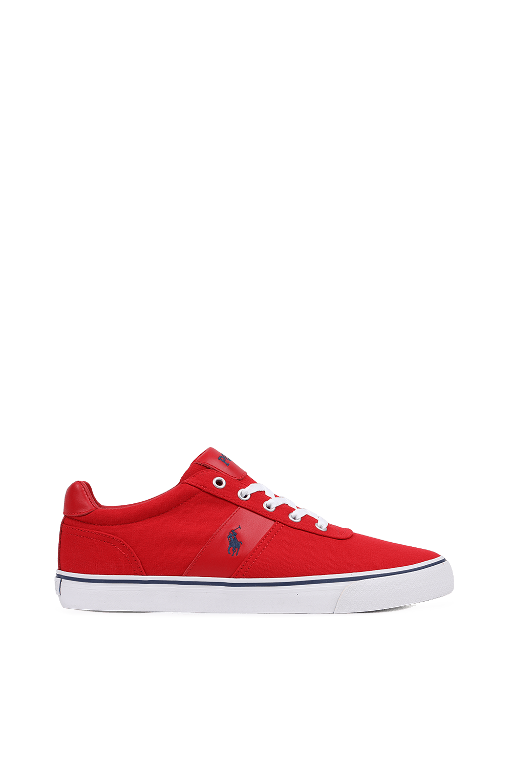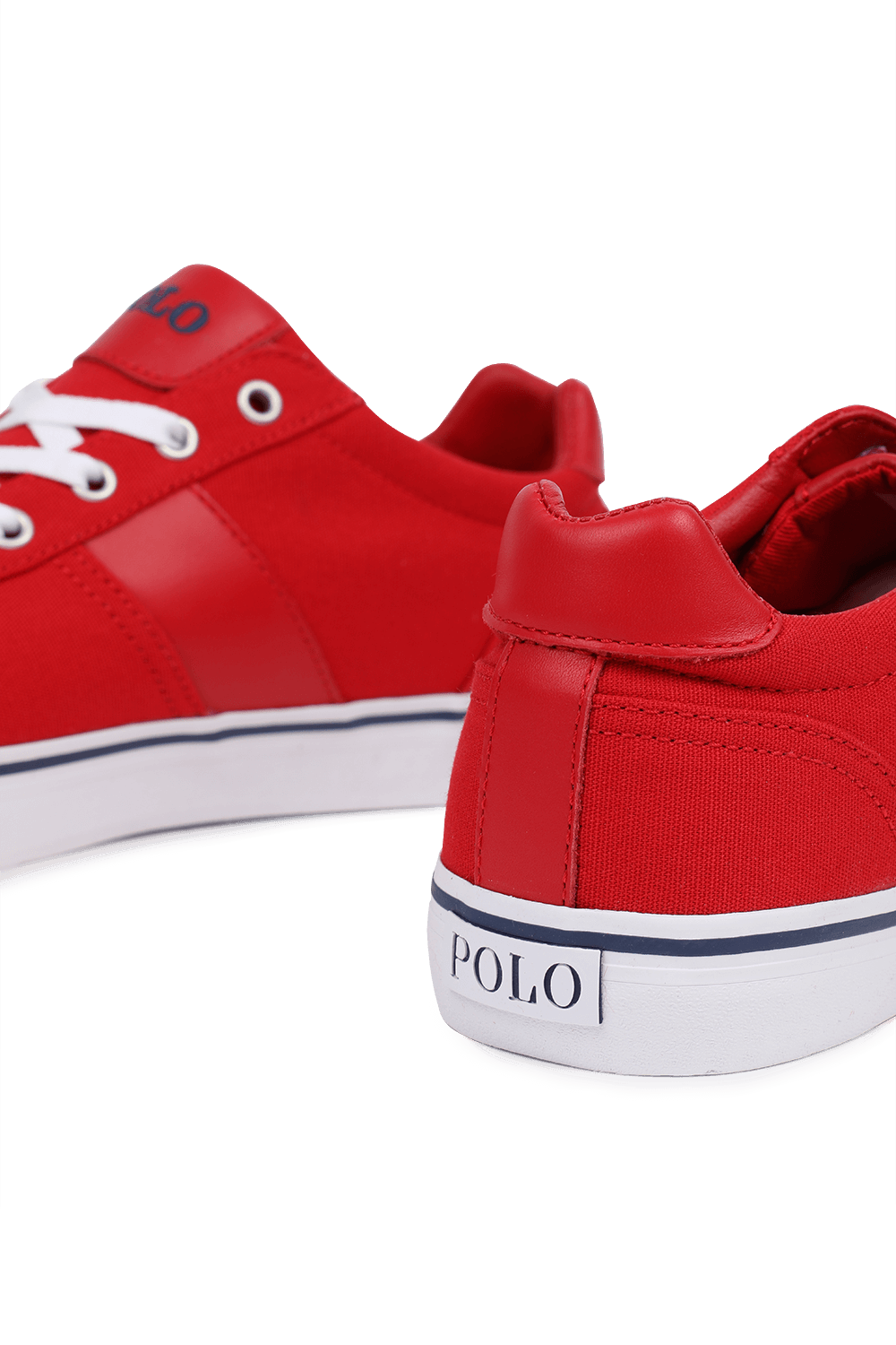 נעלי סניקרס מבית פולו ראלף לורן. זהו דגם העשוי תערובת כותנה ועור בגוון אדום. מדובר בזוג בעל רכיסה נמוכה וצללית קלאסית כאשר שם המותג המופיע מאחור והלוגו בצדדים חותם את עיצובו האייקוני והעל זמני.