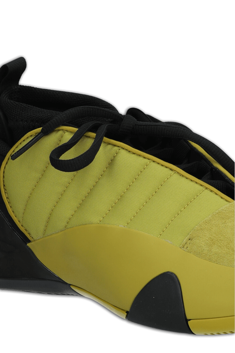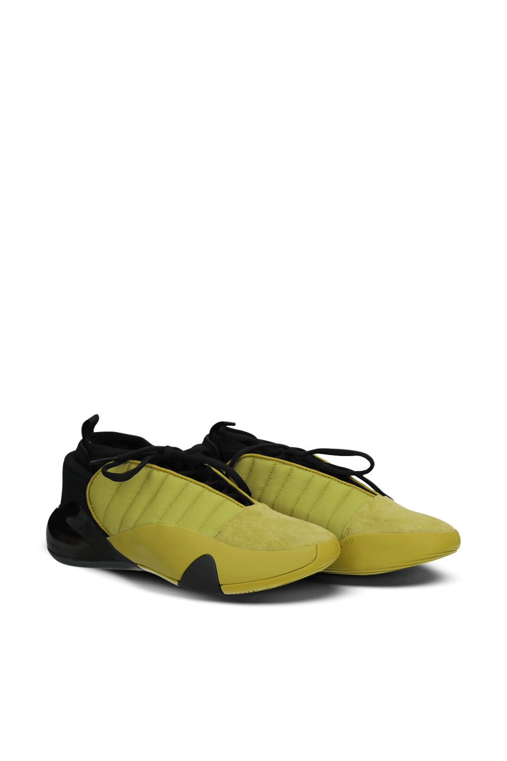 נעלי סניקרס מדגם Harden Vol.7 מבית Adidas, עשויות טקסטיל בצבעי שחור וצהוב חרדל עם סוליית גומי והן מעוצבות בהשראת משחק הכדורסל להפקת מירב הכישורים בדומה לנעליו של ג'יימס הארדן, שחקן ה-NBA.