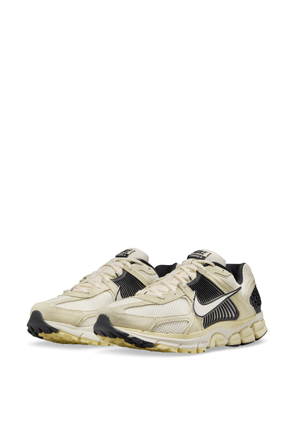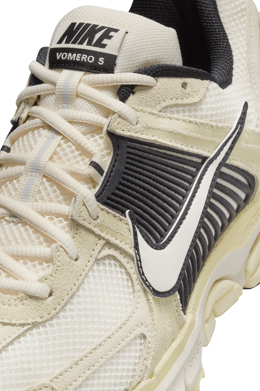 נעלי סניקרס Zoom Vomero 5 מבית Nike - נעלי אופנה המתאימות גם לאימון. הן מעוצבות במראה תלת מימד, בהשראת מסר חיובי של יצירת נתיבים חדשים בחיינו תוך שילוב מורכבות ועומק. הנעליים עשויות עור, עור טבעוני וטקסטיל ובעיצוב רשת עם אלמנטים מחזירי אור. סוליית Zoom Air רכה ורספונסיבית, מאפשרת התנתקות מהירה וקלה מהקרקע בזמן פעילות.