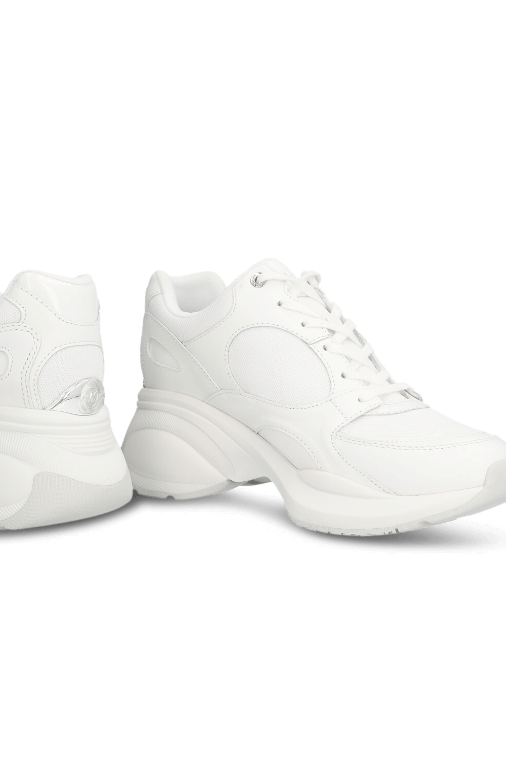 נעלי סניקרס Zuma בעיצוב Michael Kors עם עקב מוגבה. הן עשויות שילוב של עור וטקסטיל בשילוב לוגו המעצב.