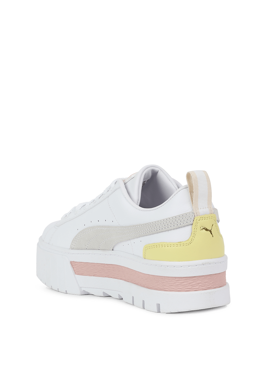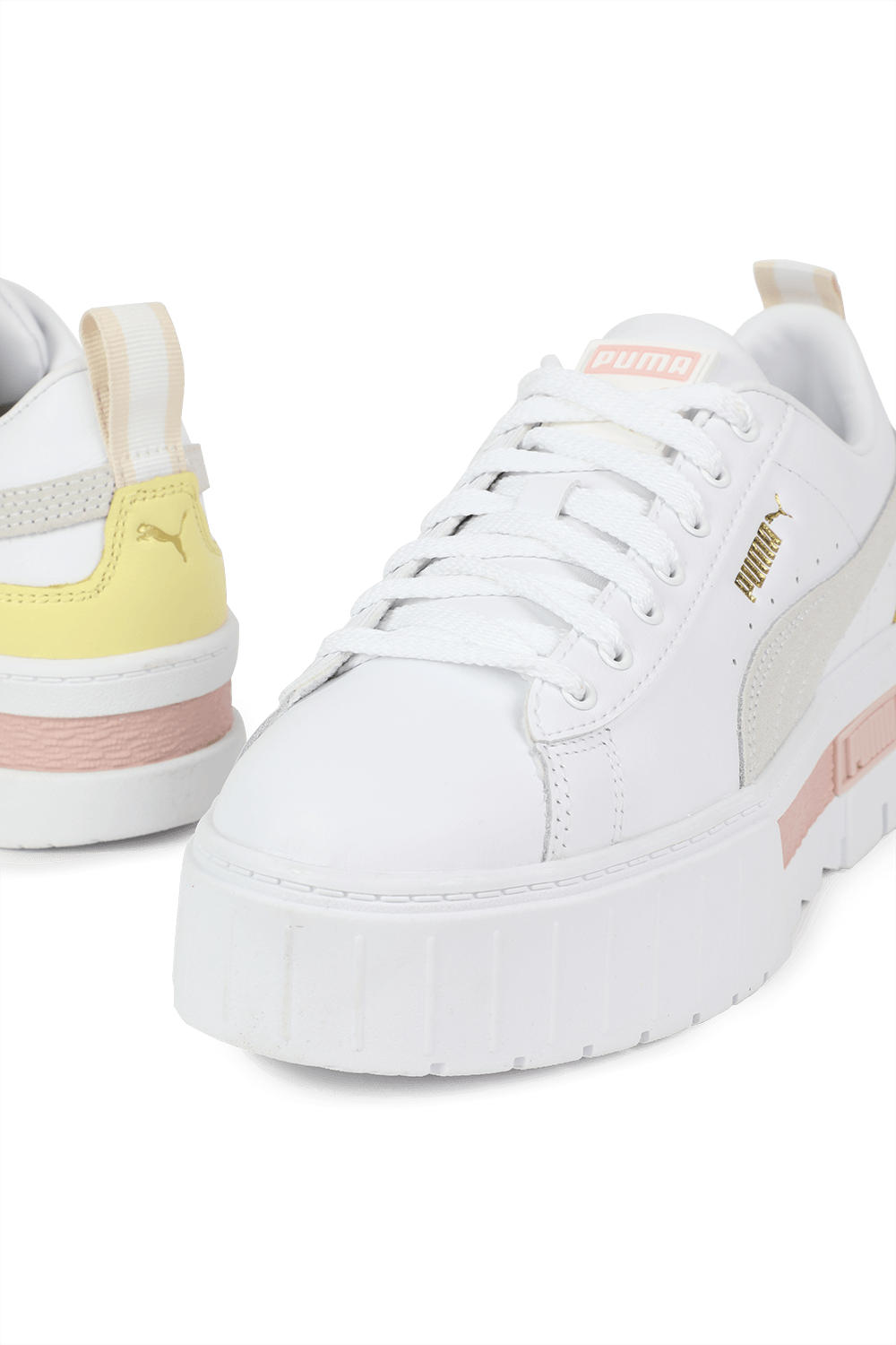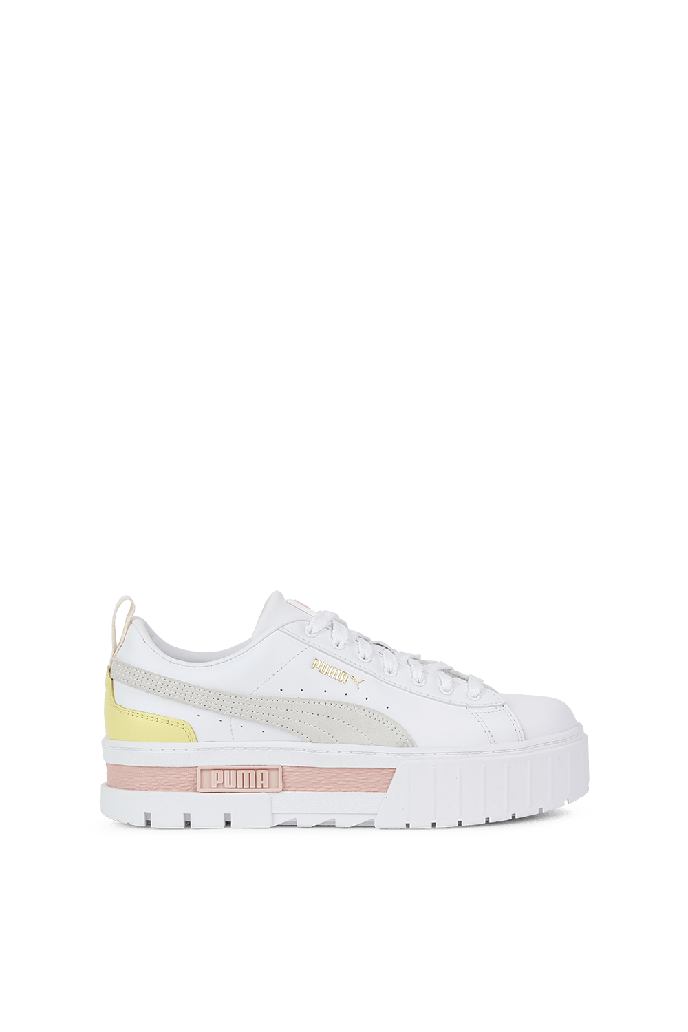 ללא ספק מדובר בנעל שהולכת לכבוש את הקיץ הקרוב. דגם Mayze המבוקש מבית ענקית הספורט פומה. לדגם צללית רטרו צ`אנקית הכוללת גפות מעור משובח וסוליות גומי עבות וגמישות לצד דיטיילז עדכניים המעניקים לנעליים מראה סופר קולי. הנעל בצבע לבן קלאסי עם סמל הגל האייקוני בגוון אפור המתכתב עם הסוליה המגורענת בורוד פסטלי והעקב הצהבהב. הימור שלנו- את הנעל הזאת לא תרצי להוריד לעולם.