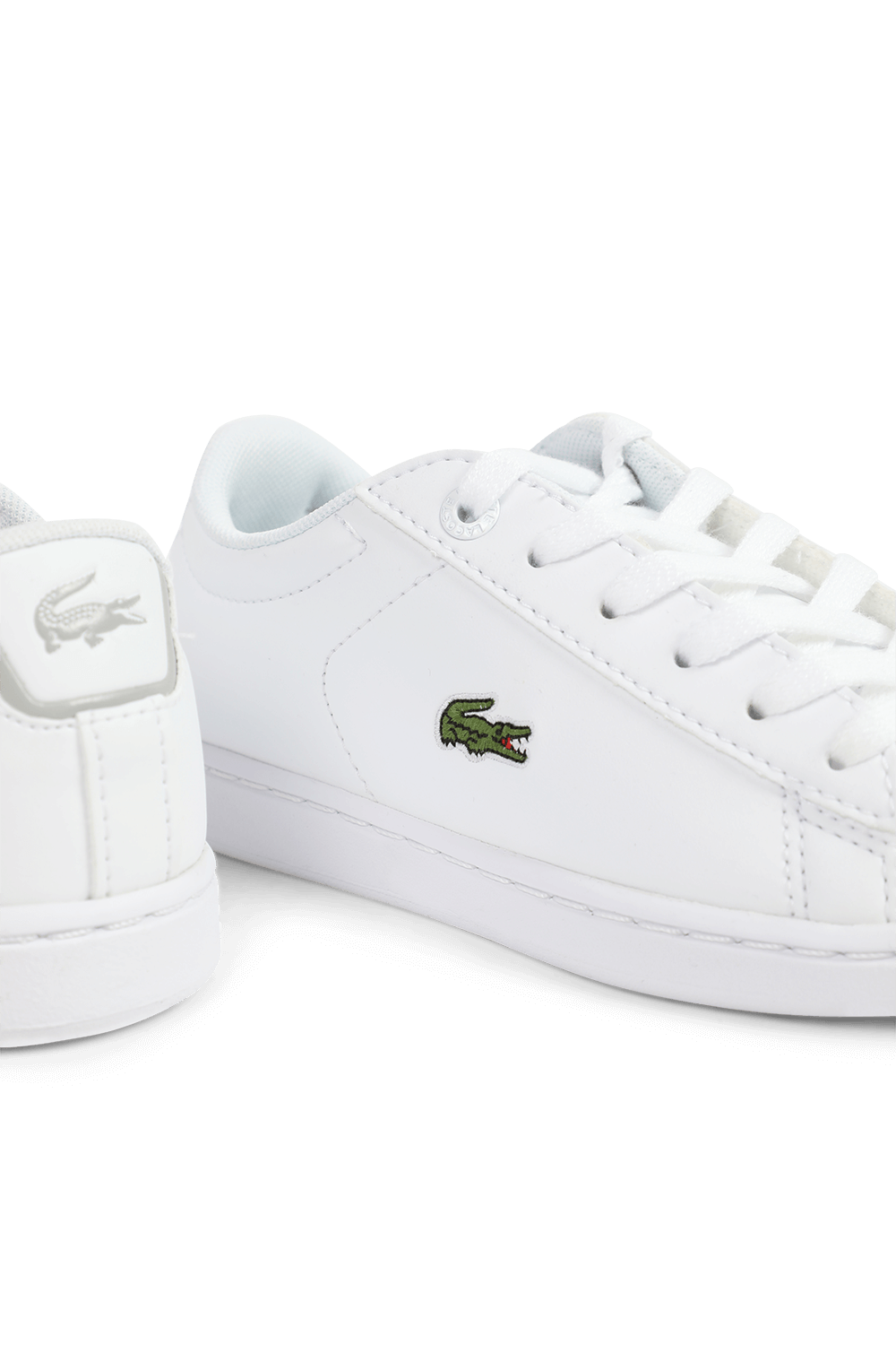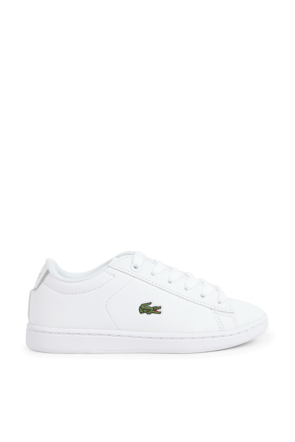 נעלי סניקרס מבית Lacoste עשויות טקסטיל דמוי עור בצבע לבן וברכיסה נמוכה.