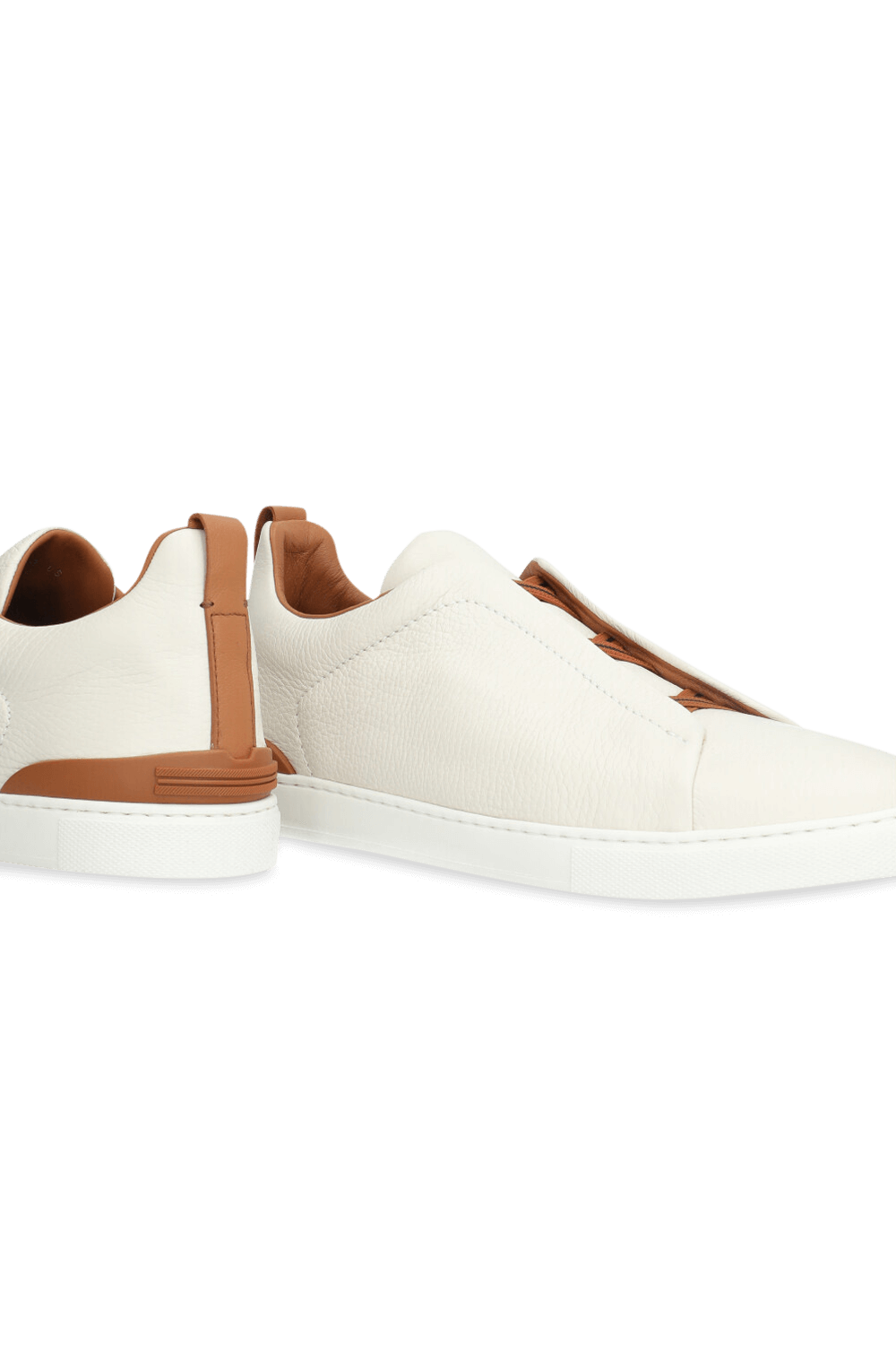 נעלי סניקרס מבית Zenga, עשויות עור בצבע בז' וחום עם שרוכים אלסטיים.