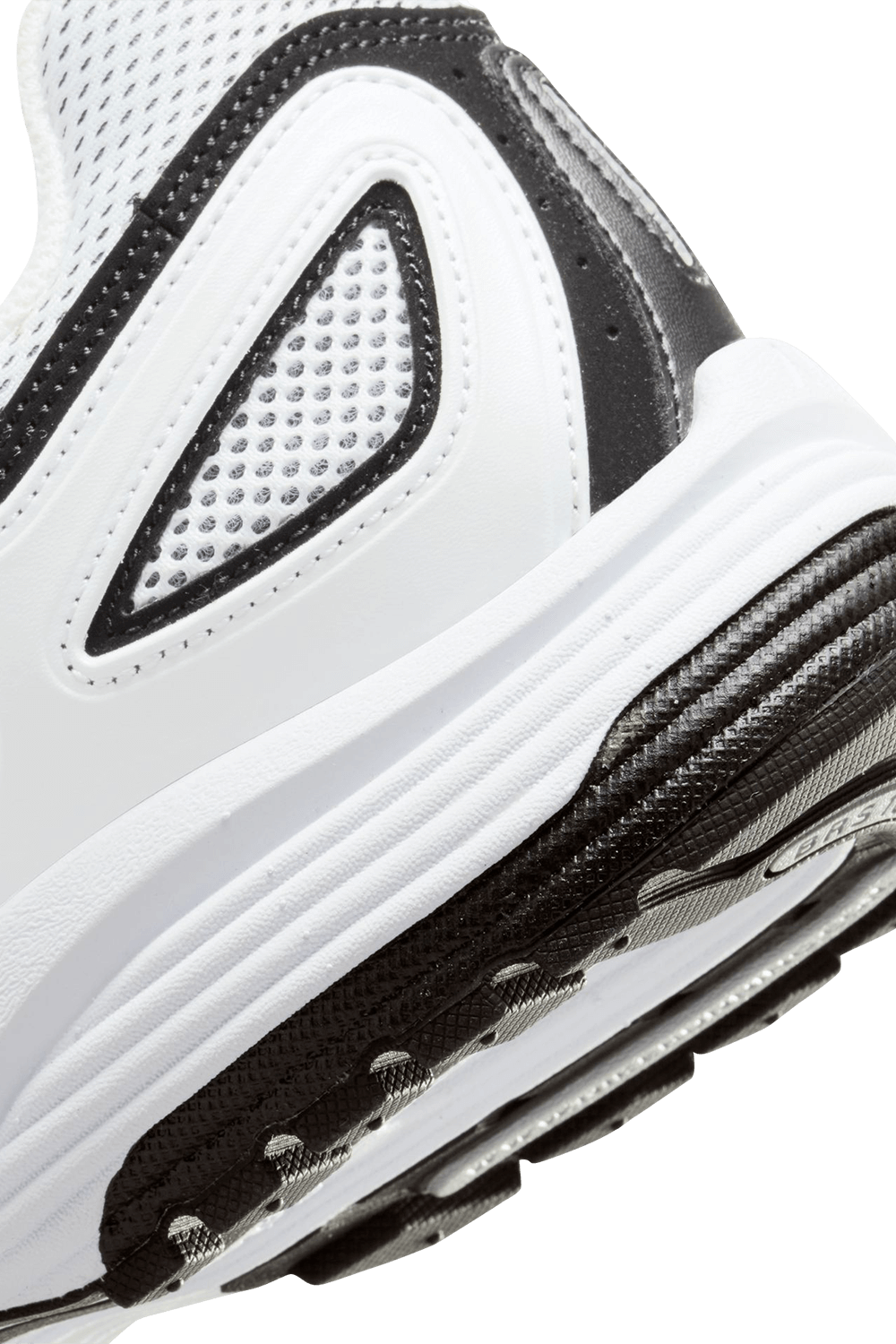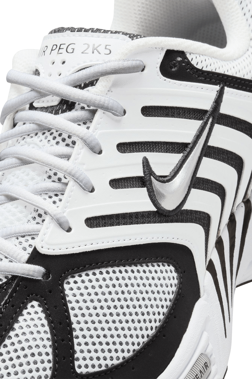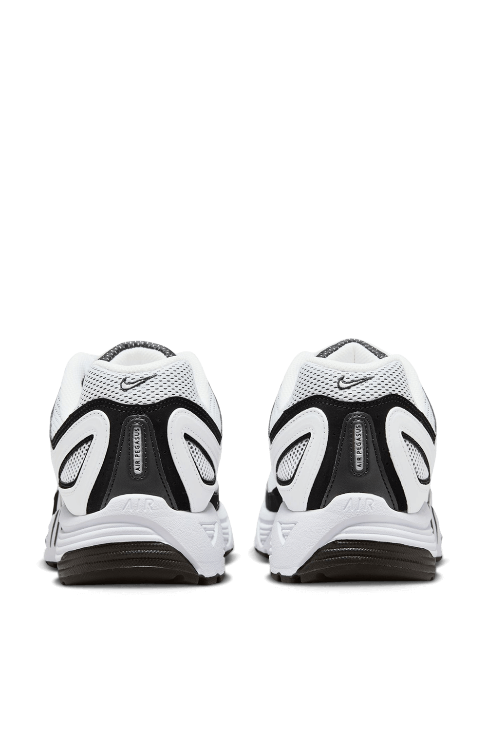 נעלי סניקרס מדגם Air Pegasus 2005 מבית Nike, עשויות טקסטיל בצבעי שחור ולבן ובעיצוב רשת כשלוגו המותג מופיע בצדדים.