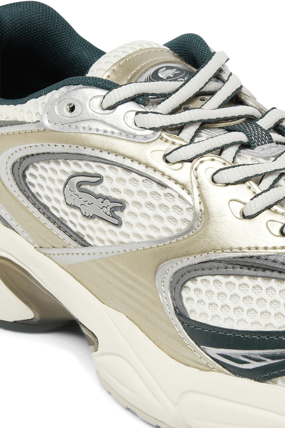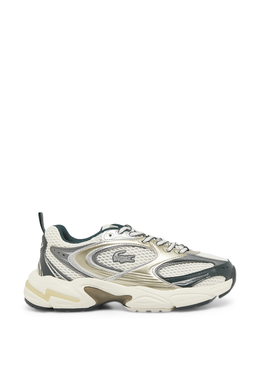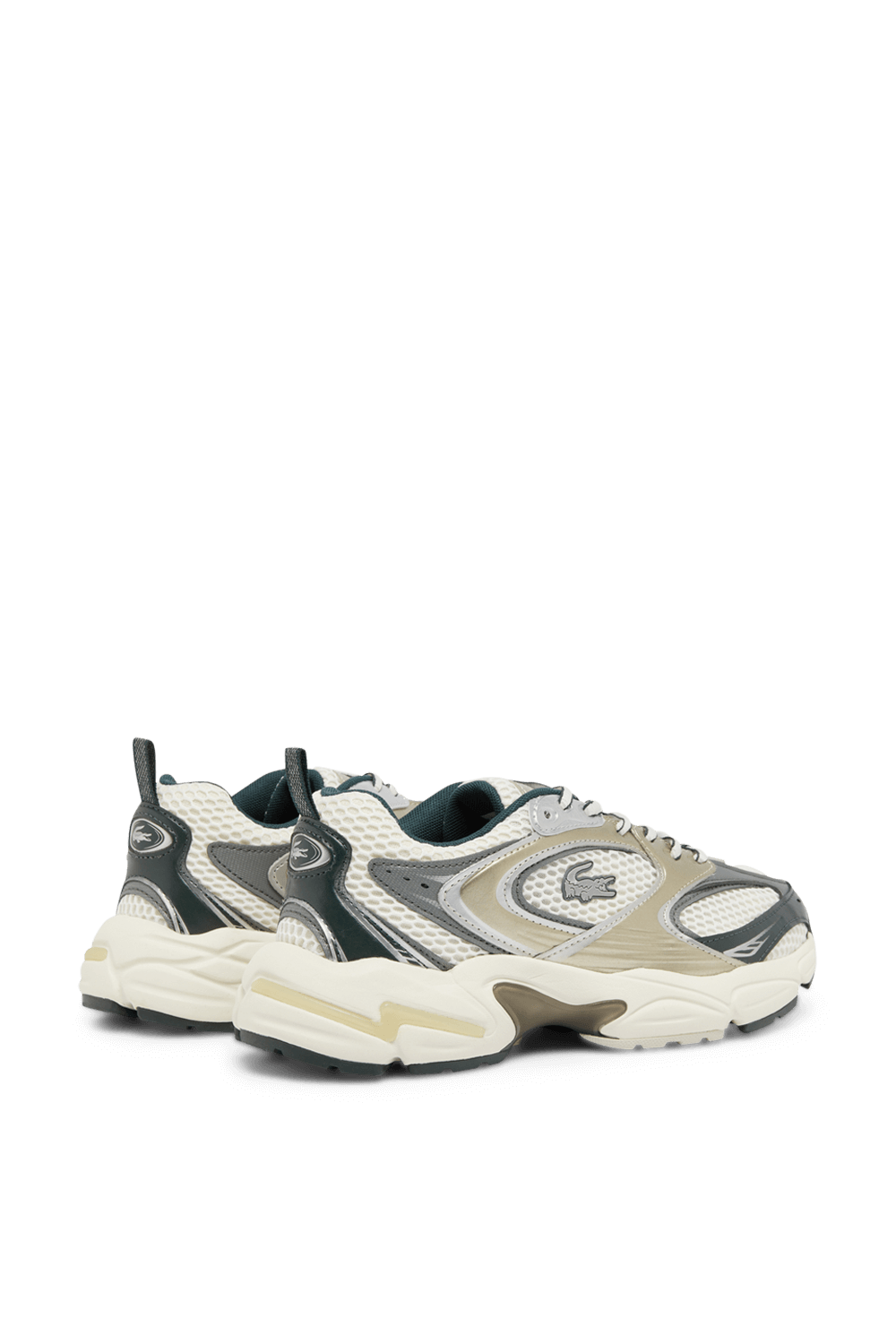 נעלי סניקרס Storm 96 2K מבית Lacoste המעוצבות כהשראה לדגם Velocity 96 - נעלי הריצה הראשונות שהשיקו בלקוסט. הן עשויות עור טבעוני בגווני אפור בשילוב רשת, בקווי עיצוב דינמיים, עם סוליית EVA מרופדת ונוחה.