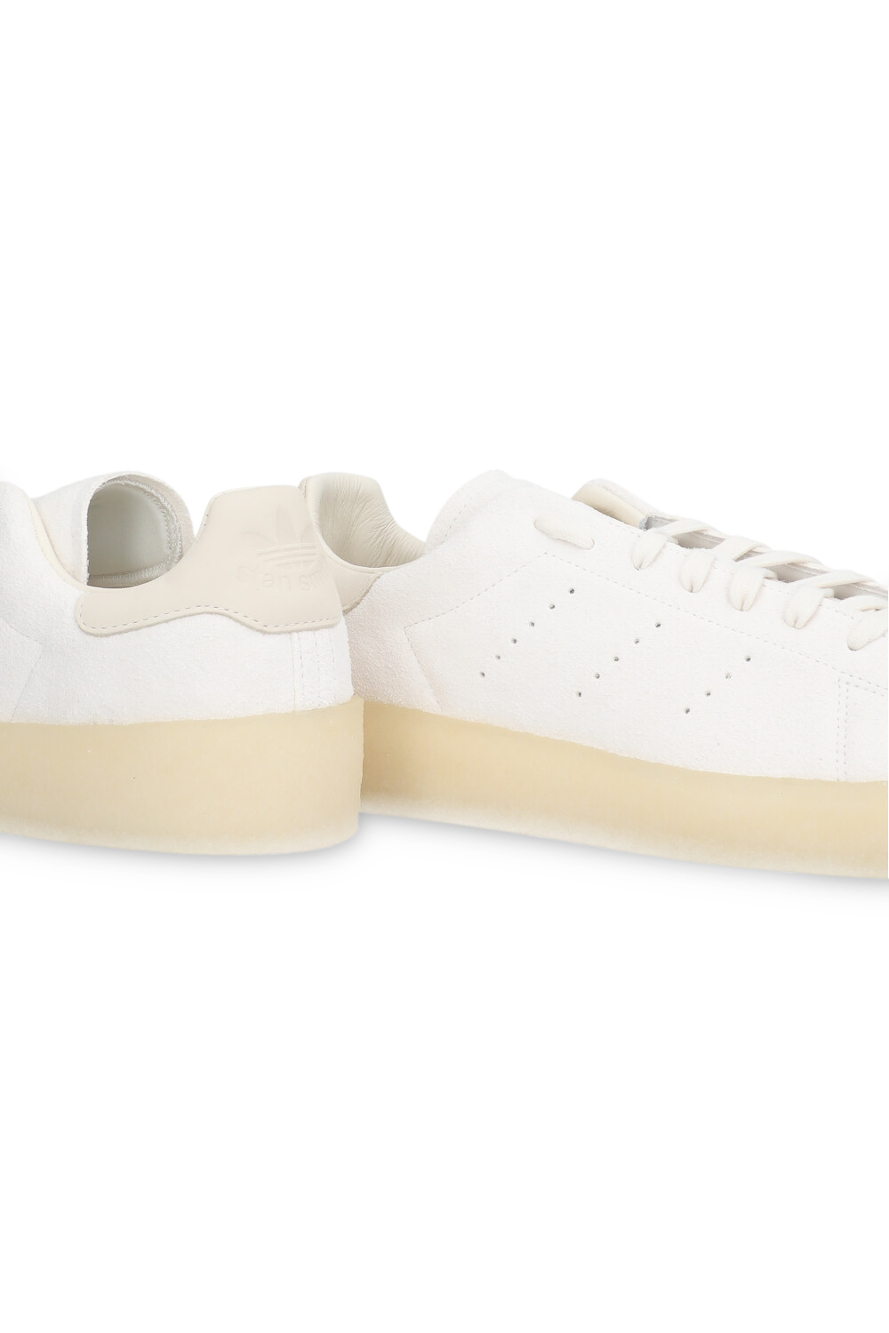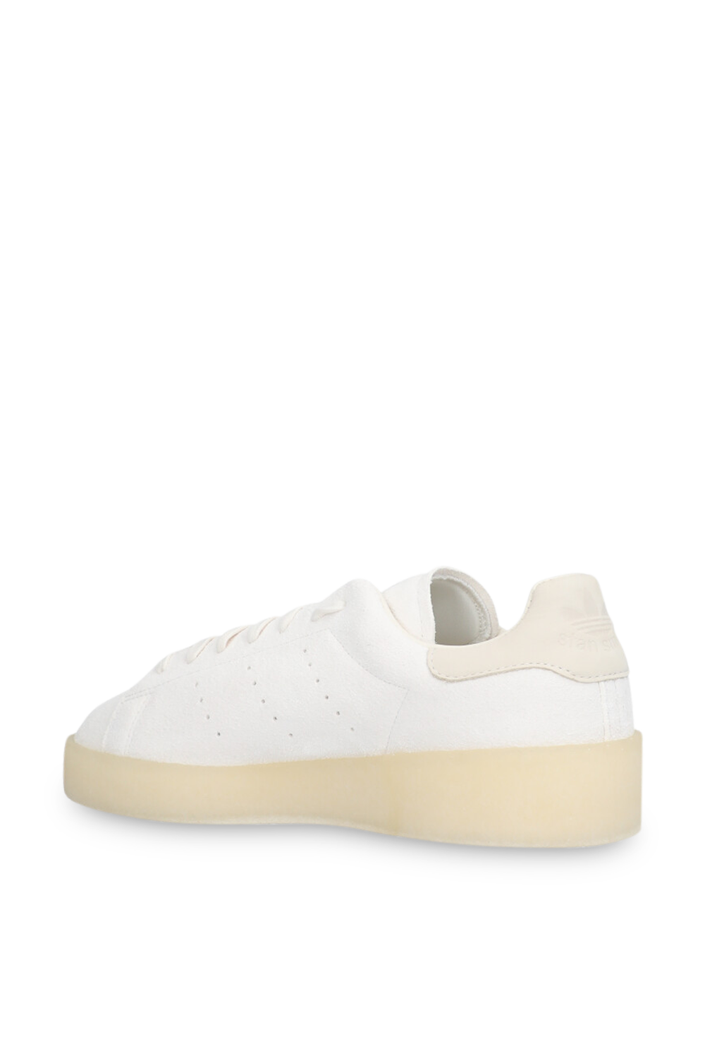 נעלי סניקרס דגם Stan Smith מבית Adidas, עשויות עור זמש בצבע לבן עם סוליות גומי פרימיום עבות.