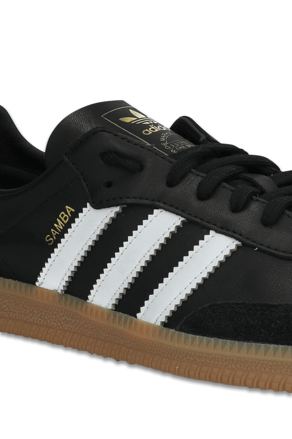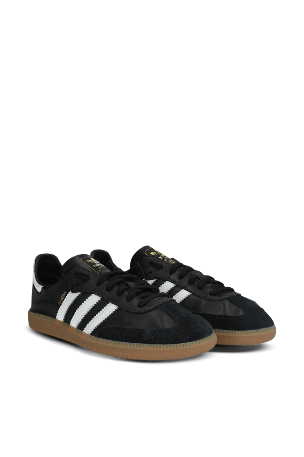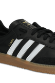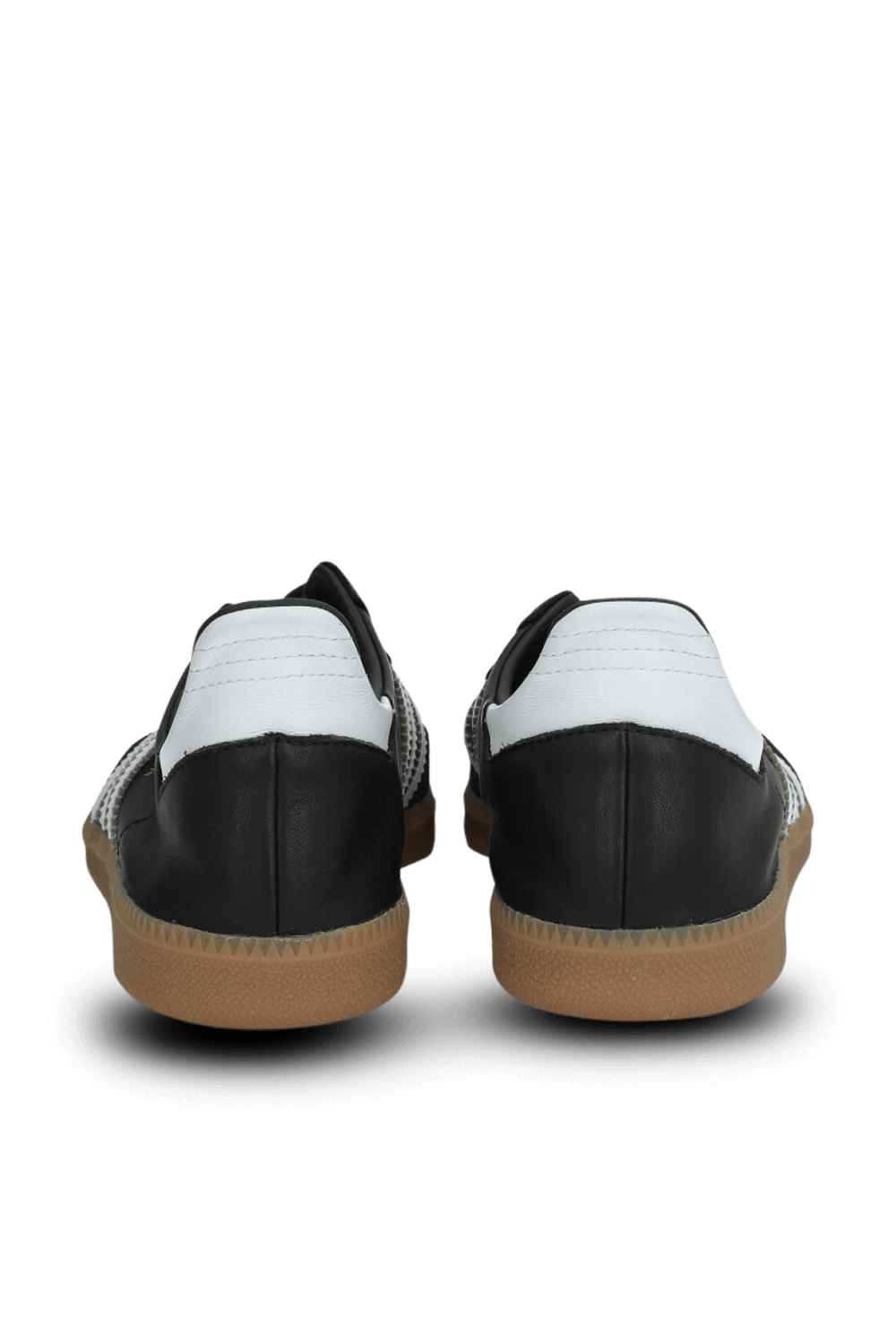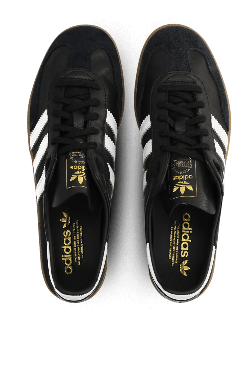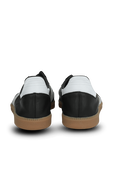 נעלי סניקרס מדגם Samba Decon מבית Adidas, עשויות עור בשילוב סוליית גומי בצבעי שחור ולבן עם הטבעת לוגו המותג בצדדים וברכיסה נמוכה.