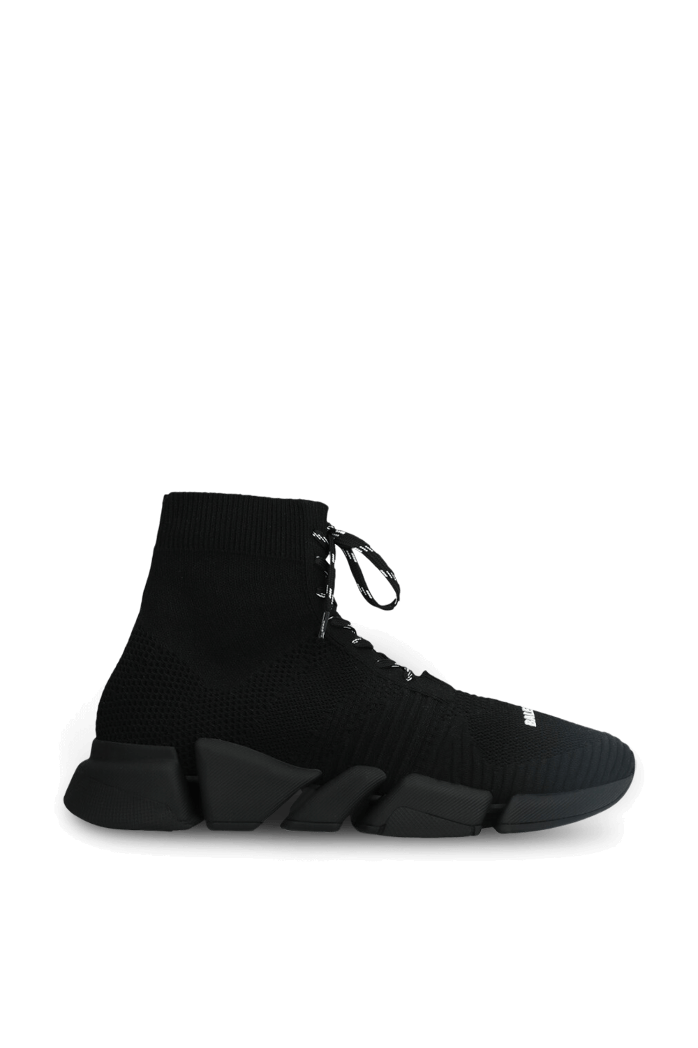 נעלי סניקרס ברכיסה גבוהה דגם Speed 2.0 מבית Balenciaga, עשויות טקסטיל סרוג ממוחזר במראה גרב בצבע שחור עם לוגו סיליקון במרכז.