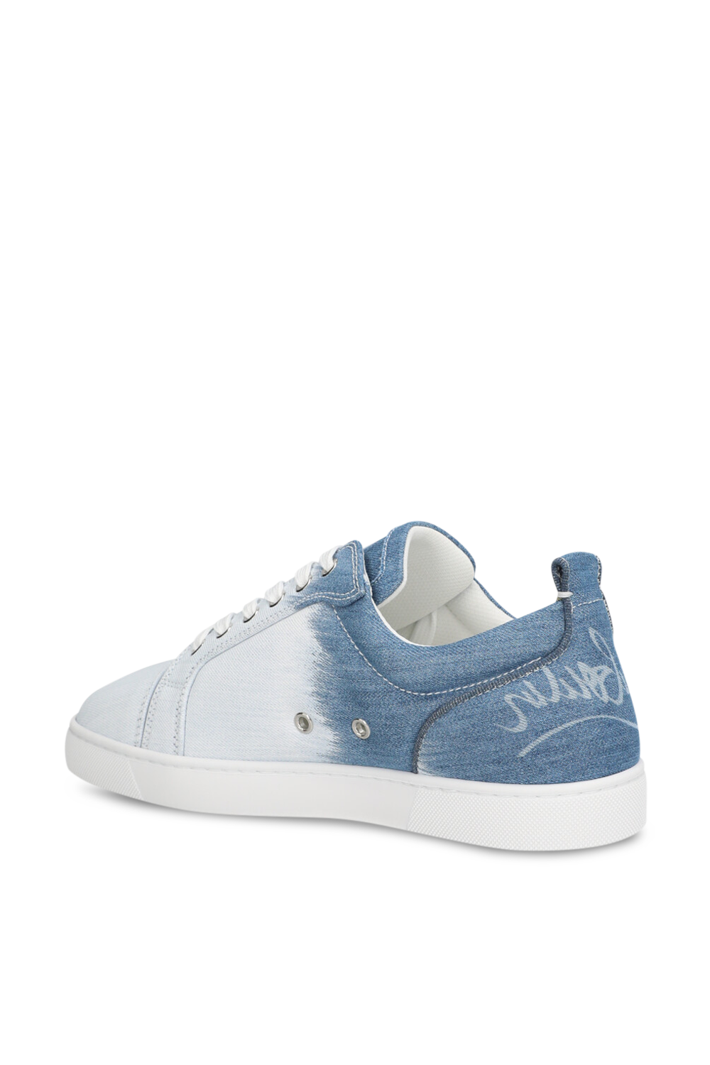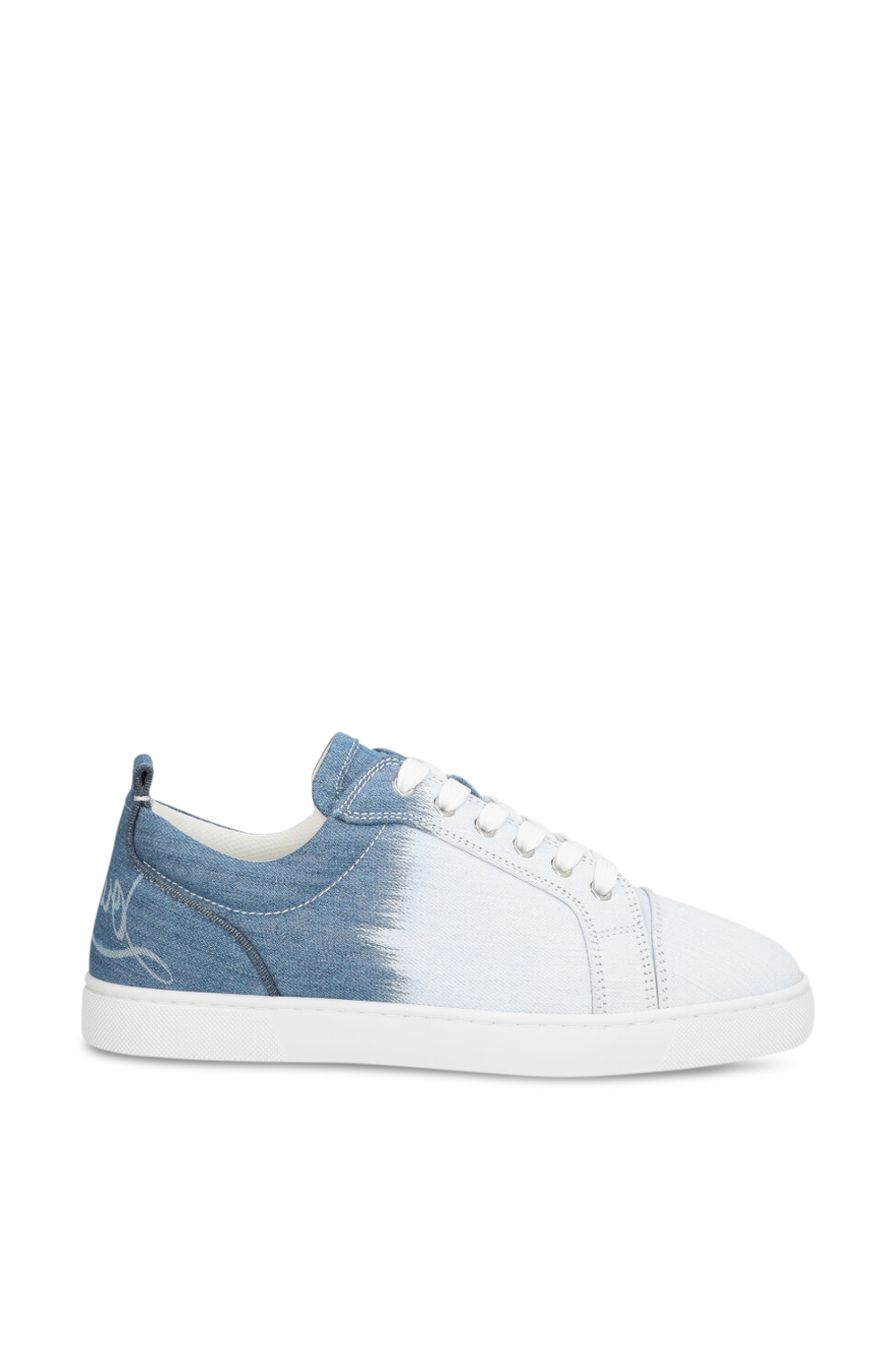 נעלי סניקרס Fun Louis Junior Flat מבית Christian Louboutin, תוצרת איטליה, עשויות כותנת דנים בצבע כחול ובעיצוב במראה אומברה לבן עם לוגו בעקב.