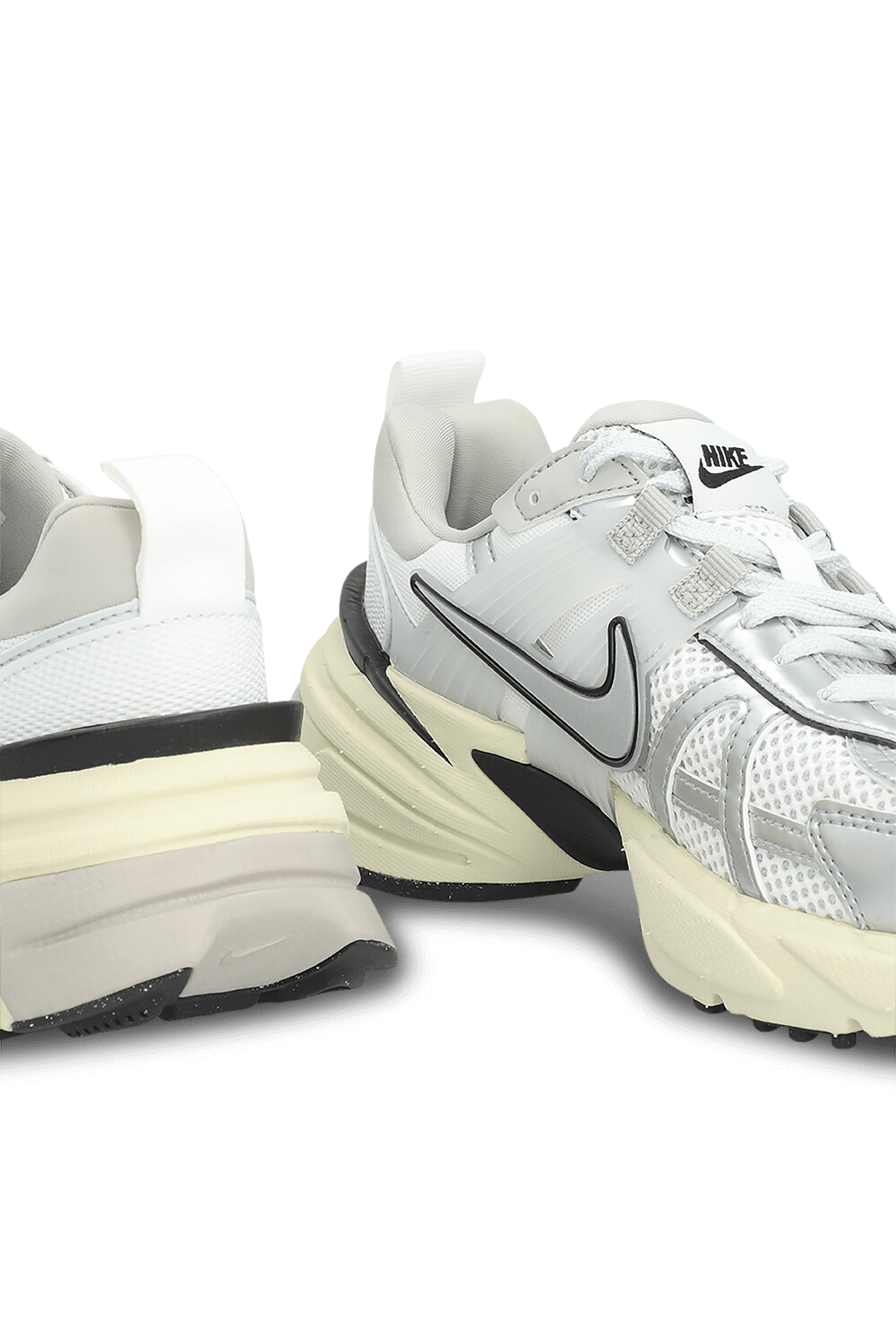 נעלי סניקרס דגם V2K Run מבית Nike, עשויות תערובת טקסטיל ובד רשת בצבע לבן עם לווג ודיטיילז בצבע ירוק במראה רטרו לנעלי ריצה קלאסיות. לנעליים עקב צ'אנקי וסולייה תומכת לנוחות מקסימלית.