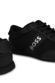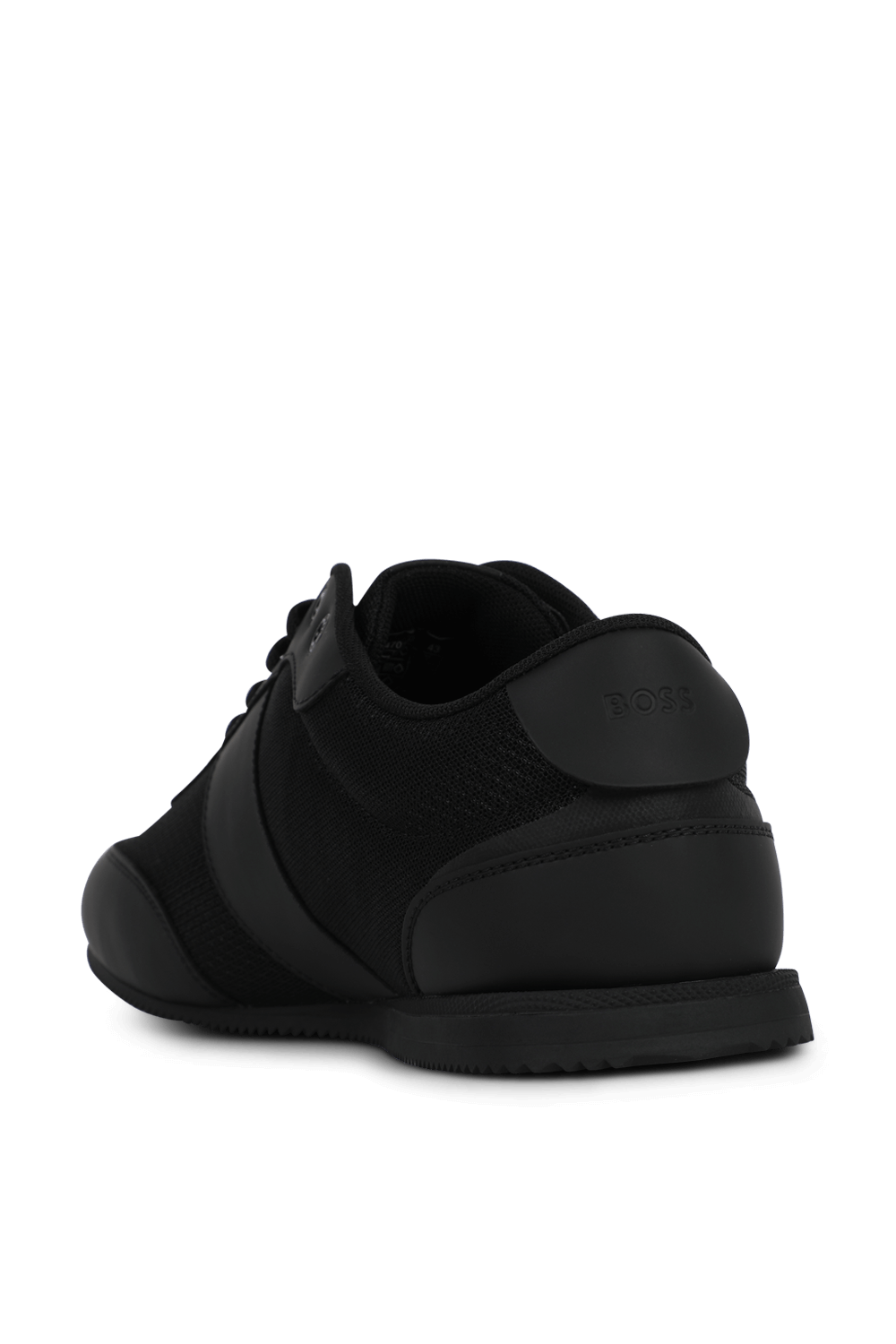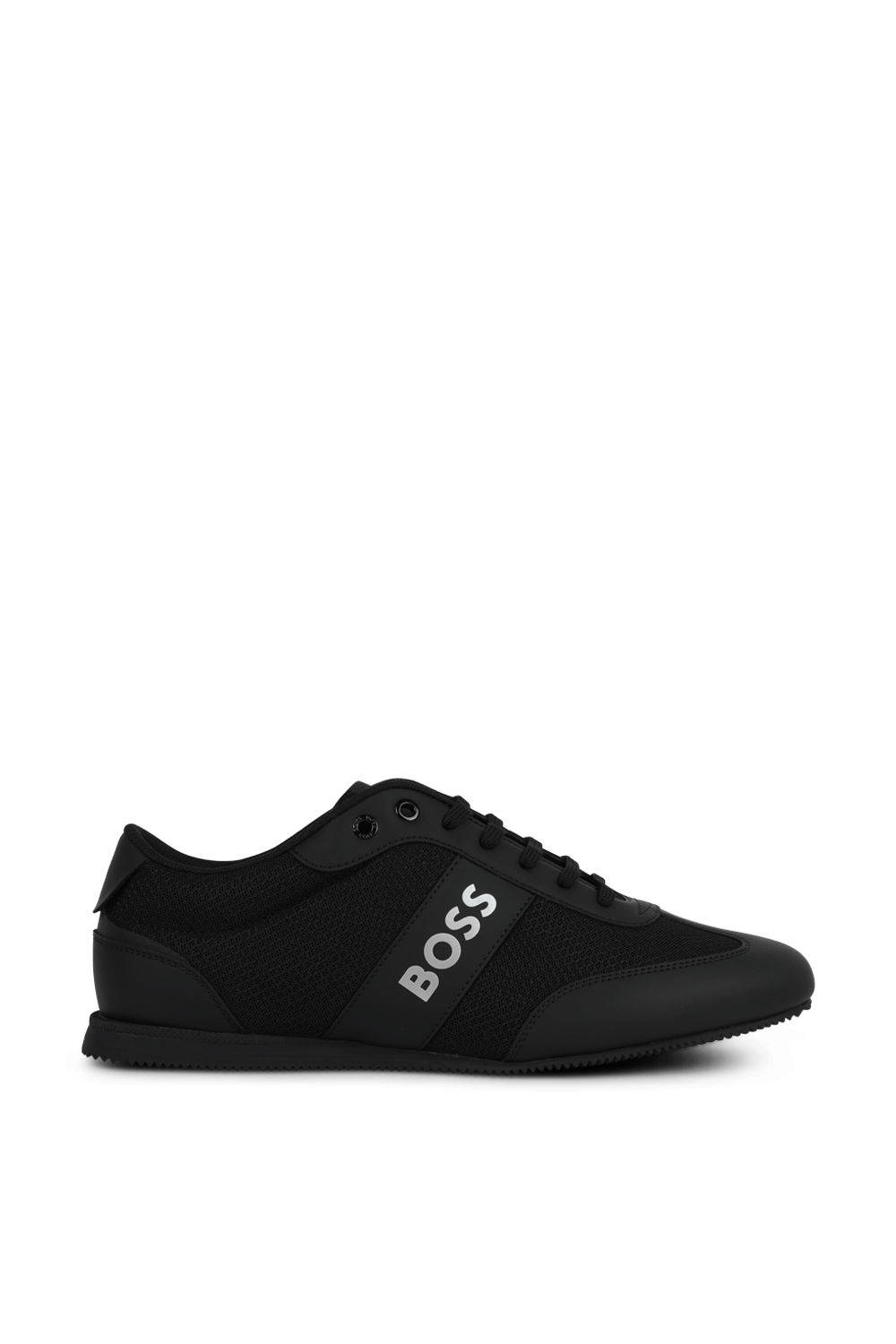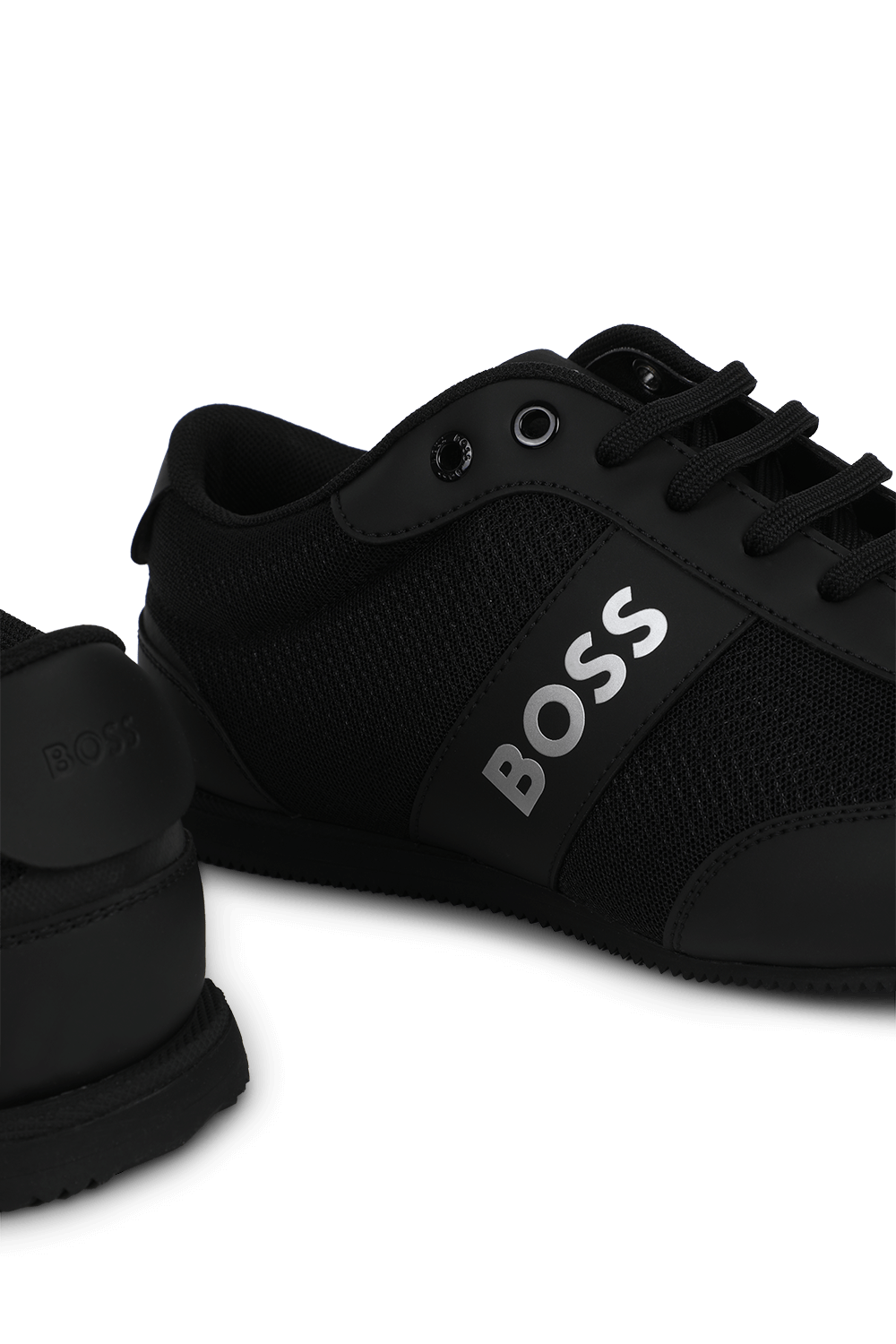 נעלי סניקרס בעיצוב רותח בעיצוב מותג האופנה היוקרתי בוס. זוג זה עשוי מטקסטיל איכותי בגוון שחור פאנלים דמויי עור בגוון שחור מבריק בצידי הגפות ולוגו בגוון כסוף. לנעליים סוליות רכות ותומכות בגוון שחור תואם עם תחתית בחיתוך שיני כריש - משלימות את עיצובו הייחודי של פריט זה. מדובר בזוג נעליים בסטייל רטרו- ספורטיבי אשר ישתלבו בקלות במלתחת הספורט והפנאי.