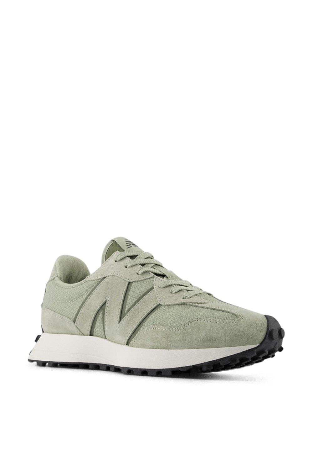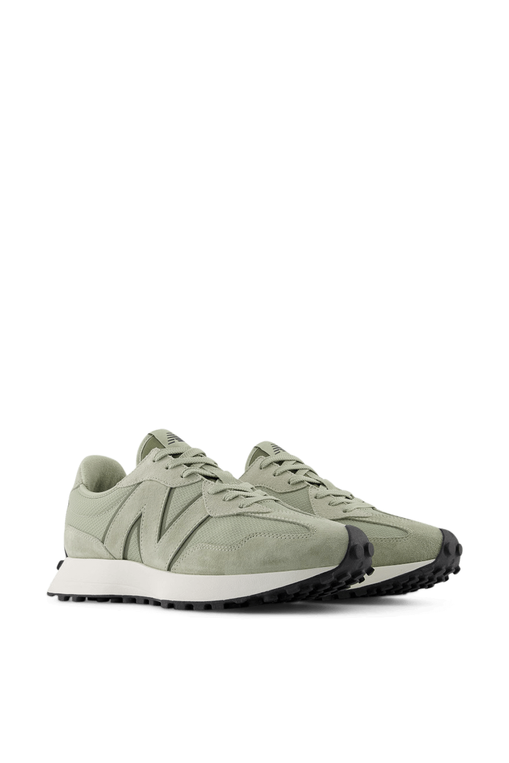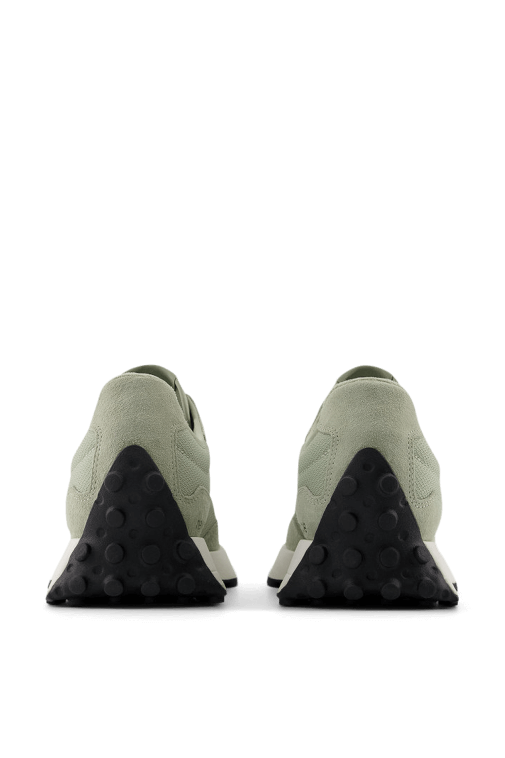 נעלי סניקרס מבית New Balance מדגם 327, המעוצבות בהשראת מורשת נעלי הריצה משנות ה-70. הן עשויות תערובת זמש בצבע ירוק, בשילוב עיצוב במראה שתי וערב עם סוליה המיוצרת בטכנולוגיה אשר מעניקה רכות, תמיכה ובולמת זעזועים.