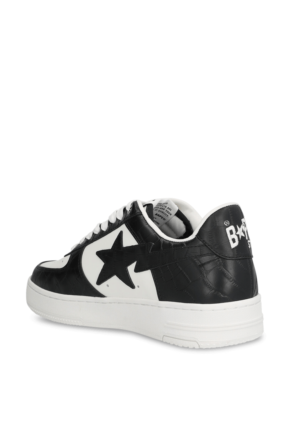 נעלי סניקרס מדגם M2 מבית Bape, עשויות עור בדוגמת קרוקו בצבעי שחור-לבן בשילוב הכוכב האייקוני בצדדים ובעיצוב מחורר בחזית.
