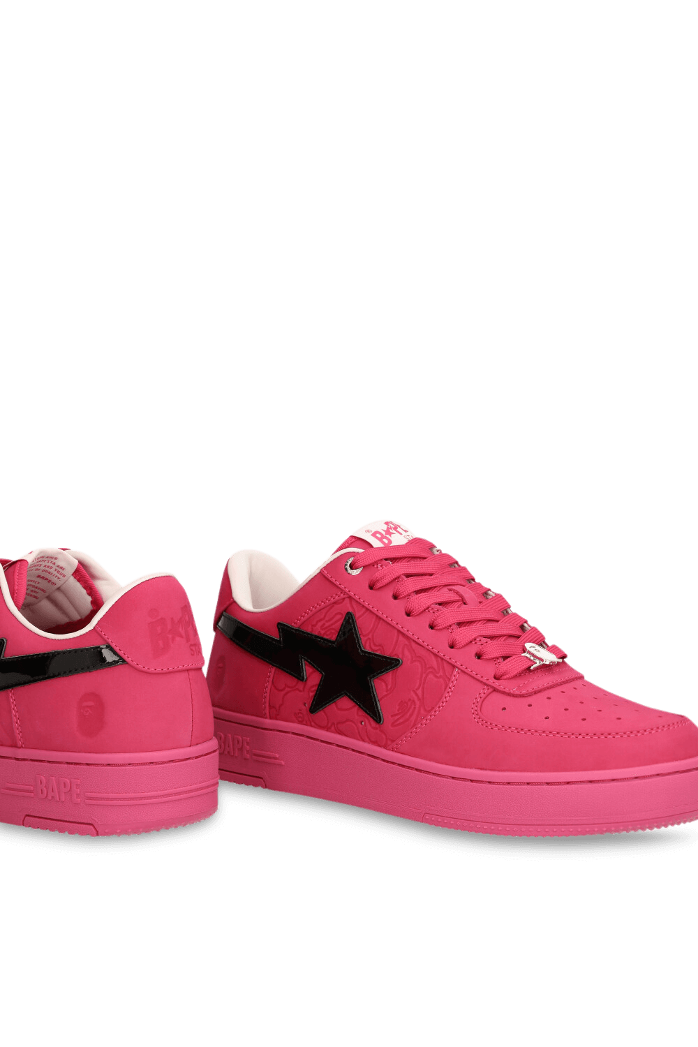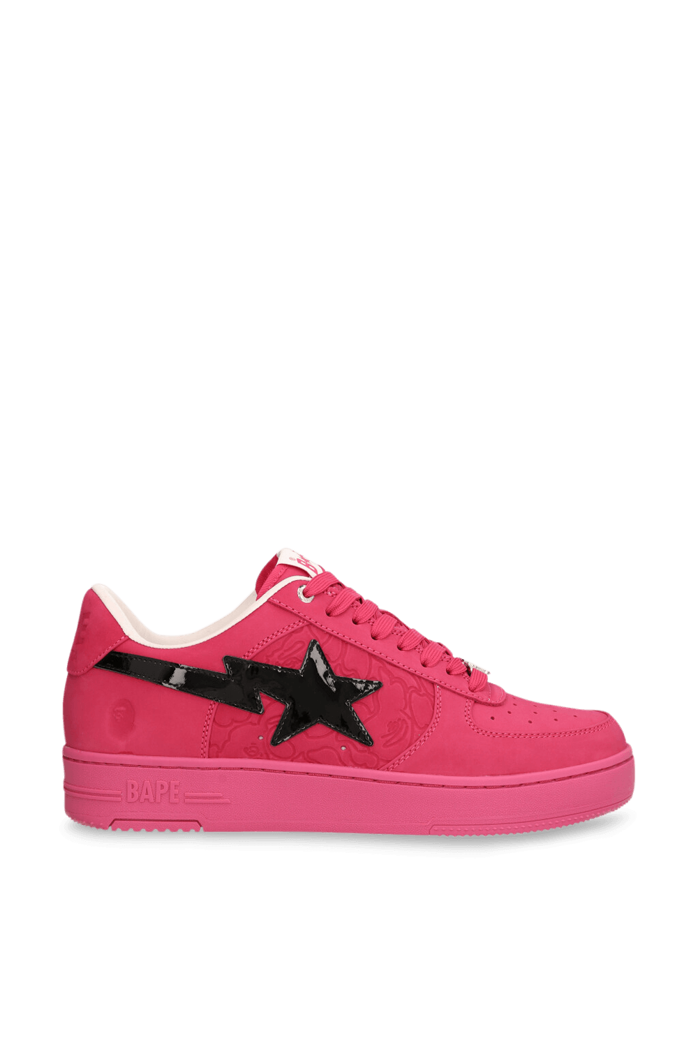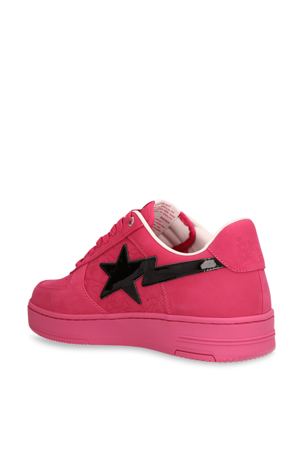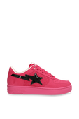 נעלי סניקרס מדגם M2 מבית Bape, עשויות מעור בצבע ורוד, בשילוב הכוכב האייקוני בצבע שחור בצדדים ובעיצוב מחורר בחזית.