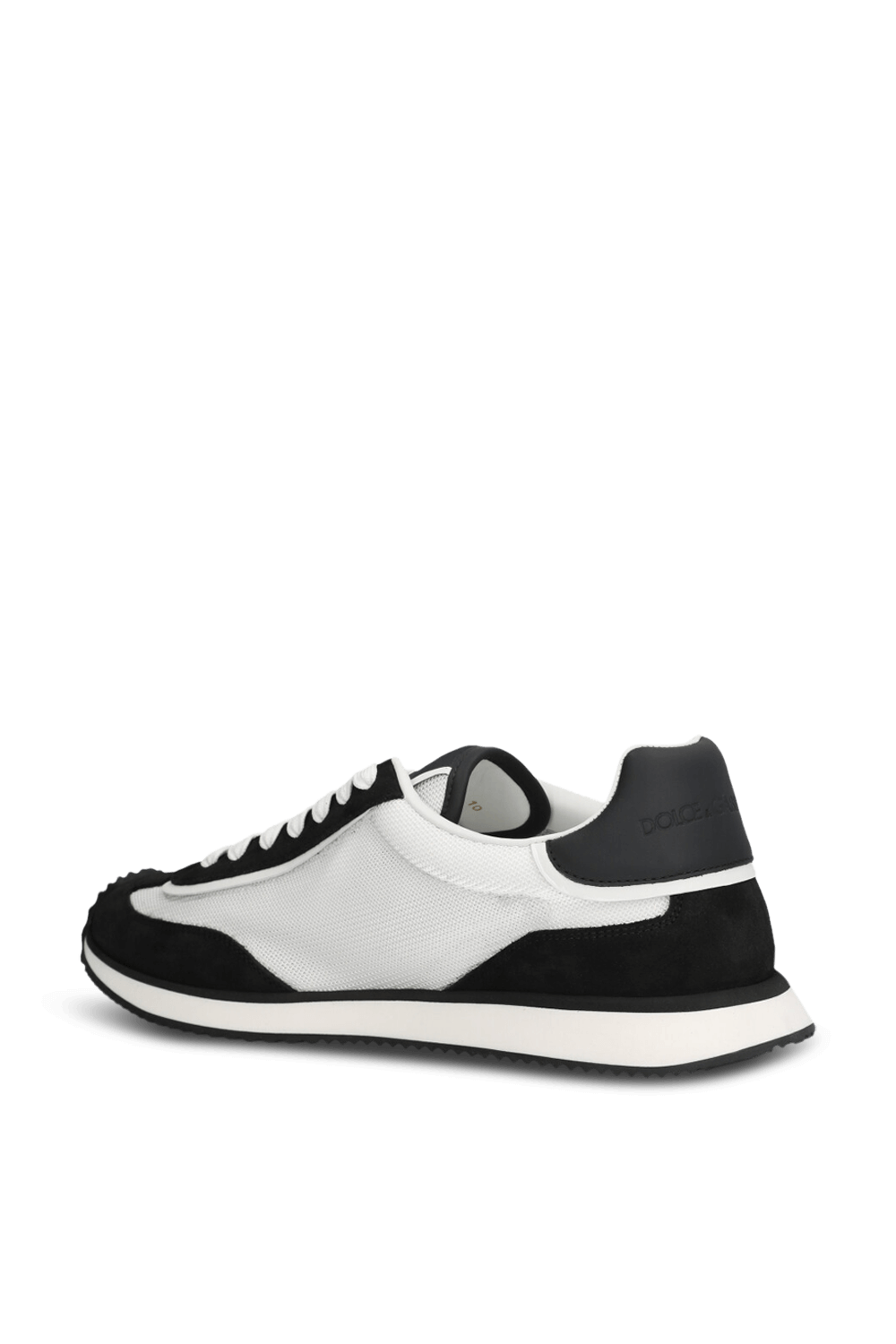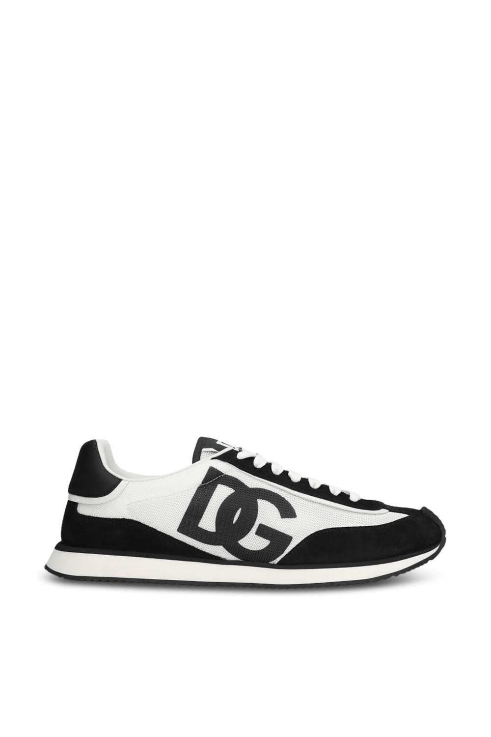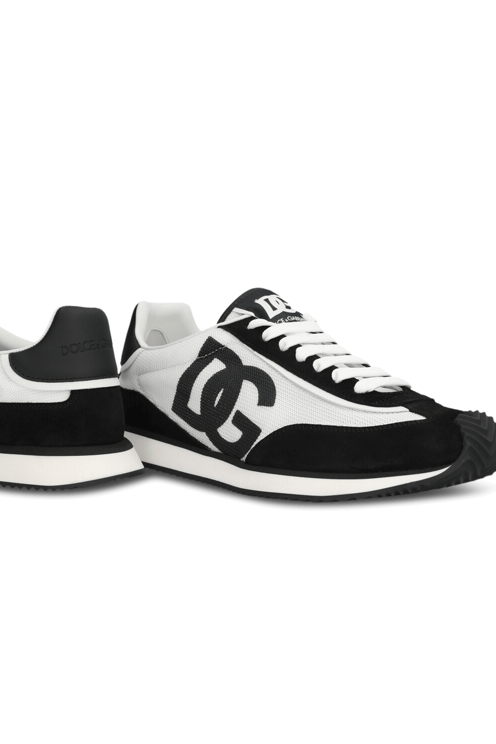 נעלי סניקרס מבית Dolce&Gabbana, תוצרת איטליה, עשויות תערובת פוליאסטר ועור בצבעי לבן ושחור בשילוב הטבעת לוגו המותג בצדדים ועל גבי הלשונית.