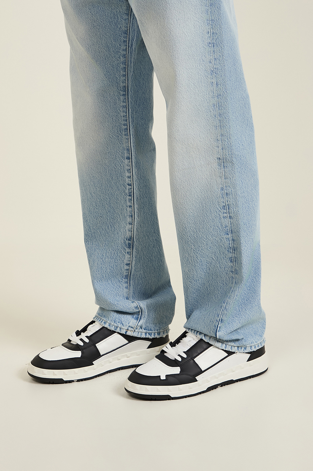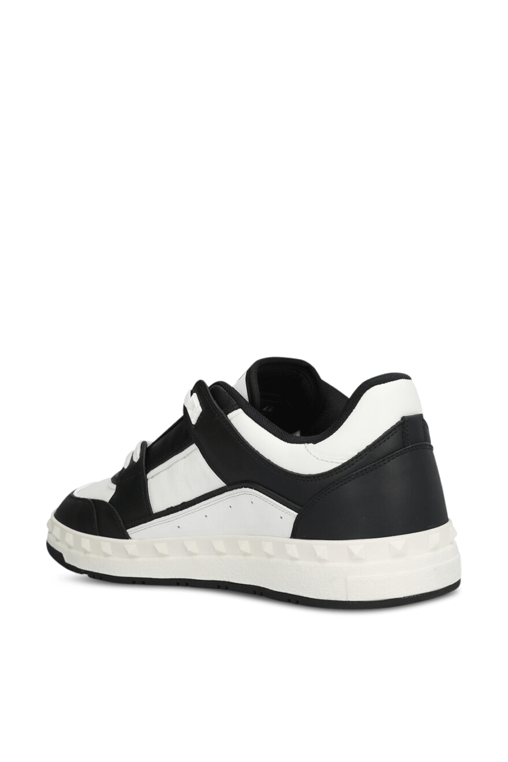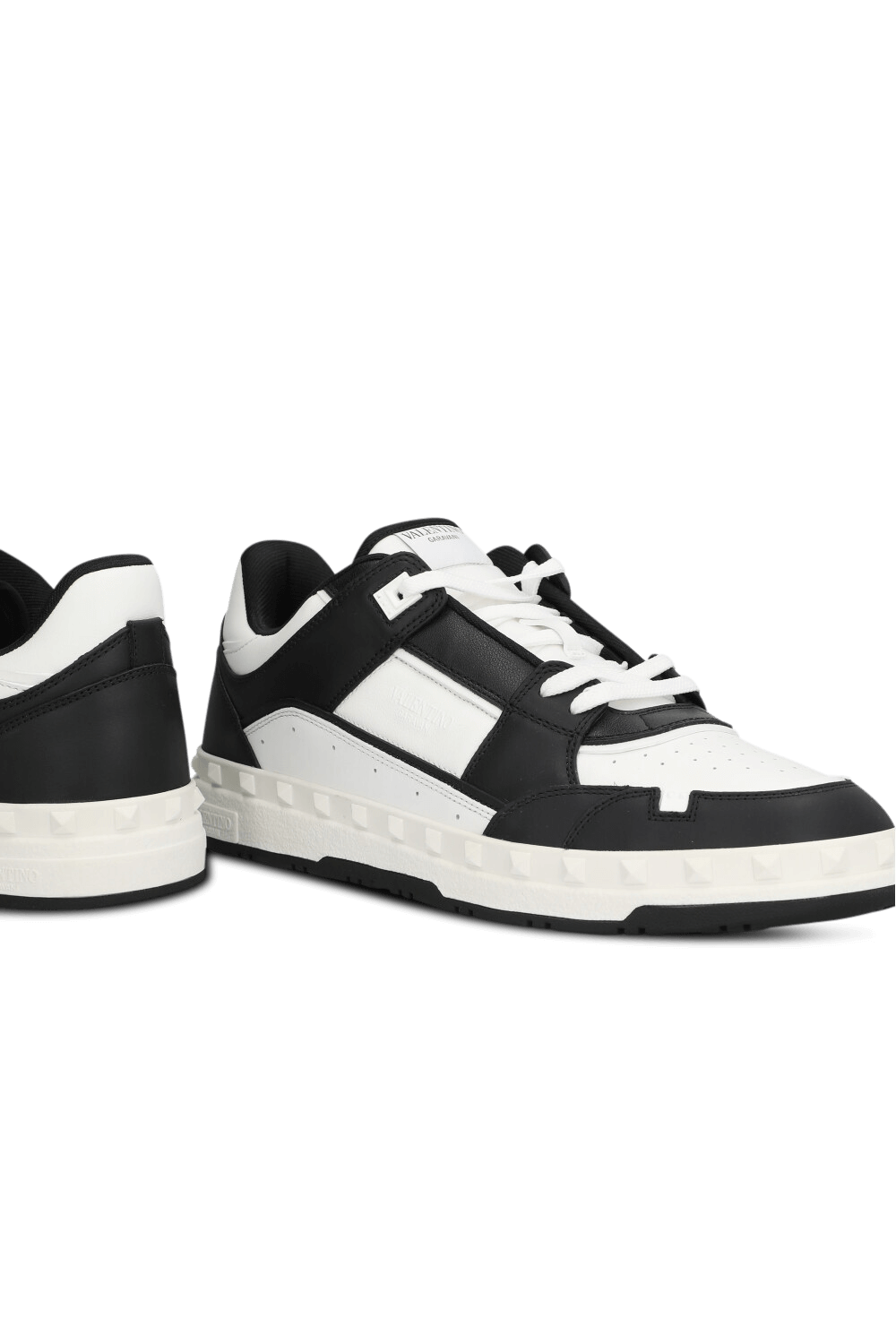 נעלי סניקרס Freedots מבית Valentino, עשויות עור בצבעים לבן ושחור עם דוגמת הניטים לאורך הסולייה ועיצוב מחורר.