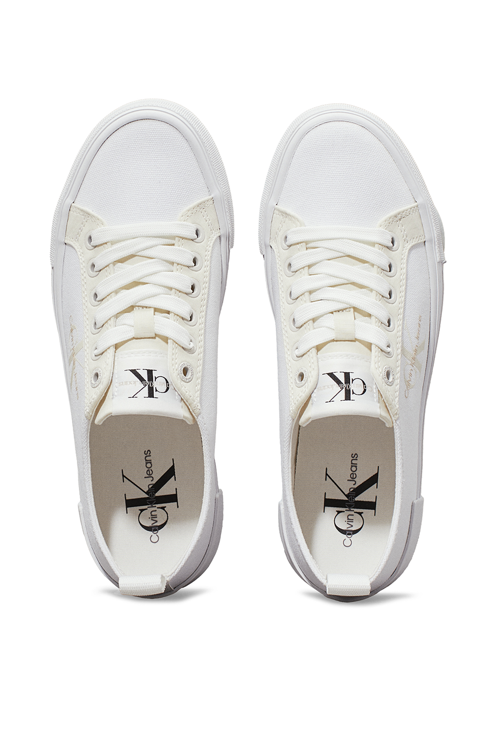נעלי סניקרס מבית Calvin Klein, עשויות כותנה ממוחזרת בצבע לבן.