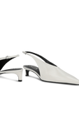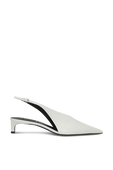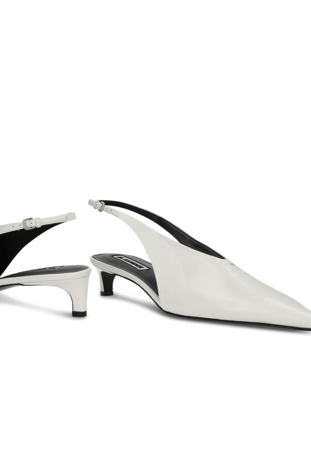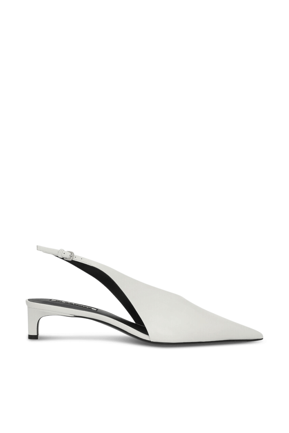 נעלי סלינג בק תוצרת איטליה, עם עקב קטן בעיצוב Jil Sander. הן עשויות עור בצבע לבן בסגירת אבזם.