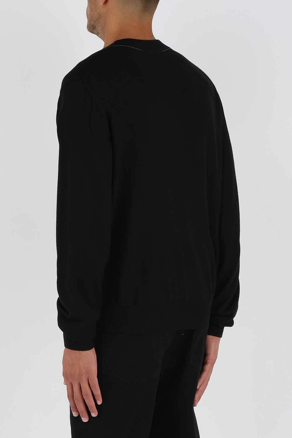 סוודר בעיצוב בית אופנת העל האיטלקי ולנטינו. זהו דגם העשוי 100% צמר איכותי בגוון שחור ולו מפתח צאוור עגול לצד שרוולים ארוכים ואמרות ריב. לפריט גזרה ישרה ונינוחה כאשר קו תפר בולט בגוון ירוק מעטר את חלקו החיצוני והפנימי של הצאוורון. מדובר בפיס בייסיק משודרג אשר ישמש אותך באופן נהדר במגוון רחב של מערכות לבוש.