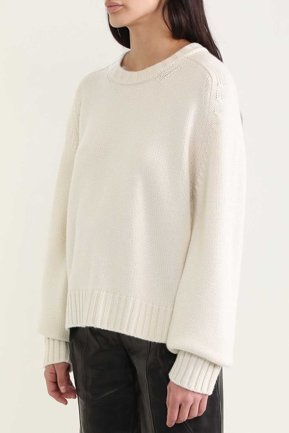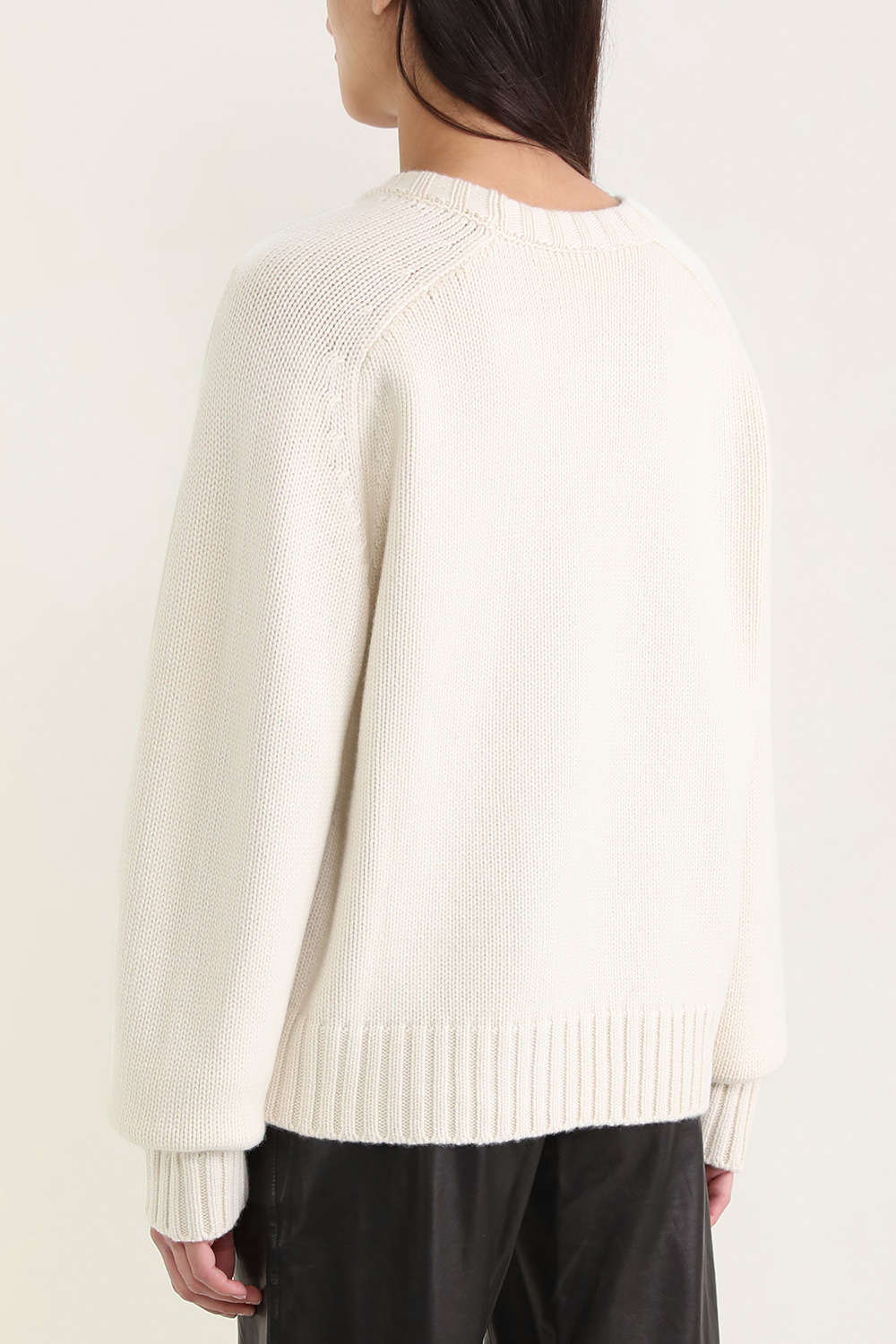 סוודר בעיצוב KHAITE העשוי 100% קשמיר משובח בגוון שמנת ובמראה סרוג קלאסי ומעודן. לפריט גזרה ישרה ונינוחה עם צוארון מעוגל ושרוולים ארוכים והוא בעל שיק על זמני ללוקים מפנקים וחמימים.