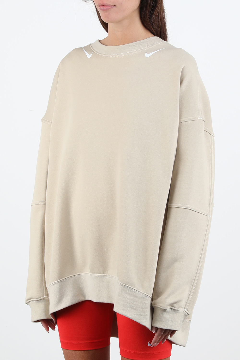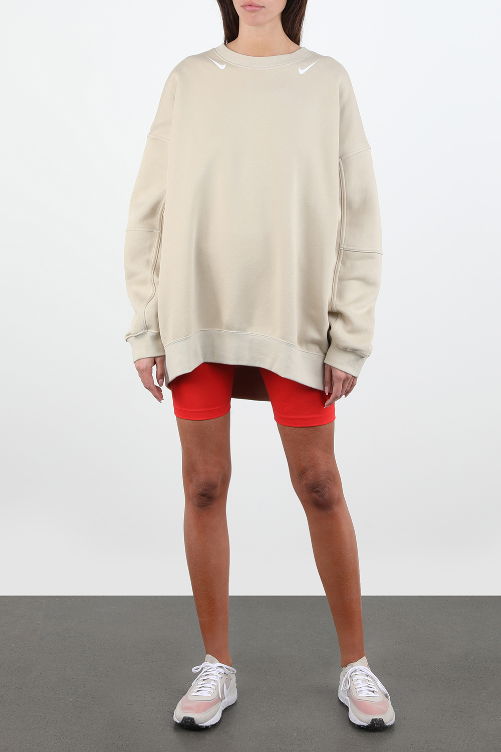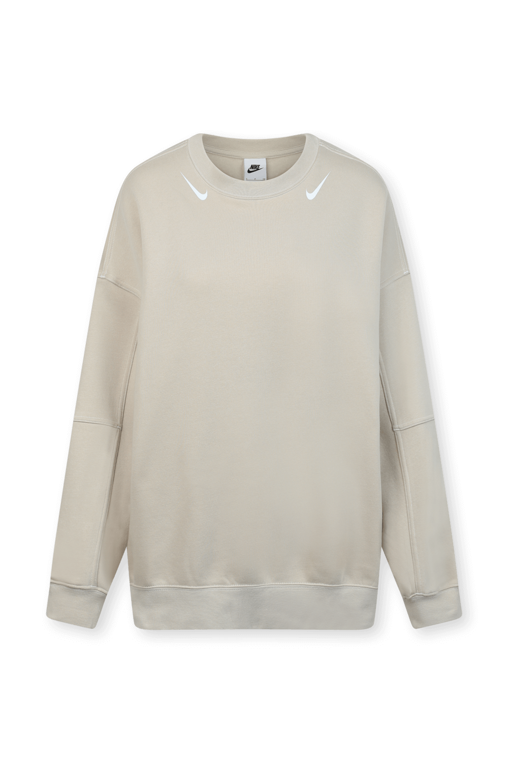 סווטשירט מבית ענקית הספורט נייקי. זהו דגם העשוי תערובת כותנה איכותית בגוון בז`. לפריט גזרה ישרה ונינוחה עם מפתח צוואר עגול ואמרות ריב. לוגו המותג מופיע בלבן בשני צידי הצווארון ובכך חותם את עיצובו השיקי של פריט זה.