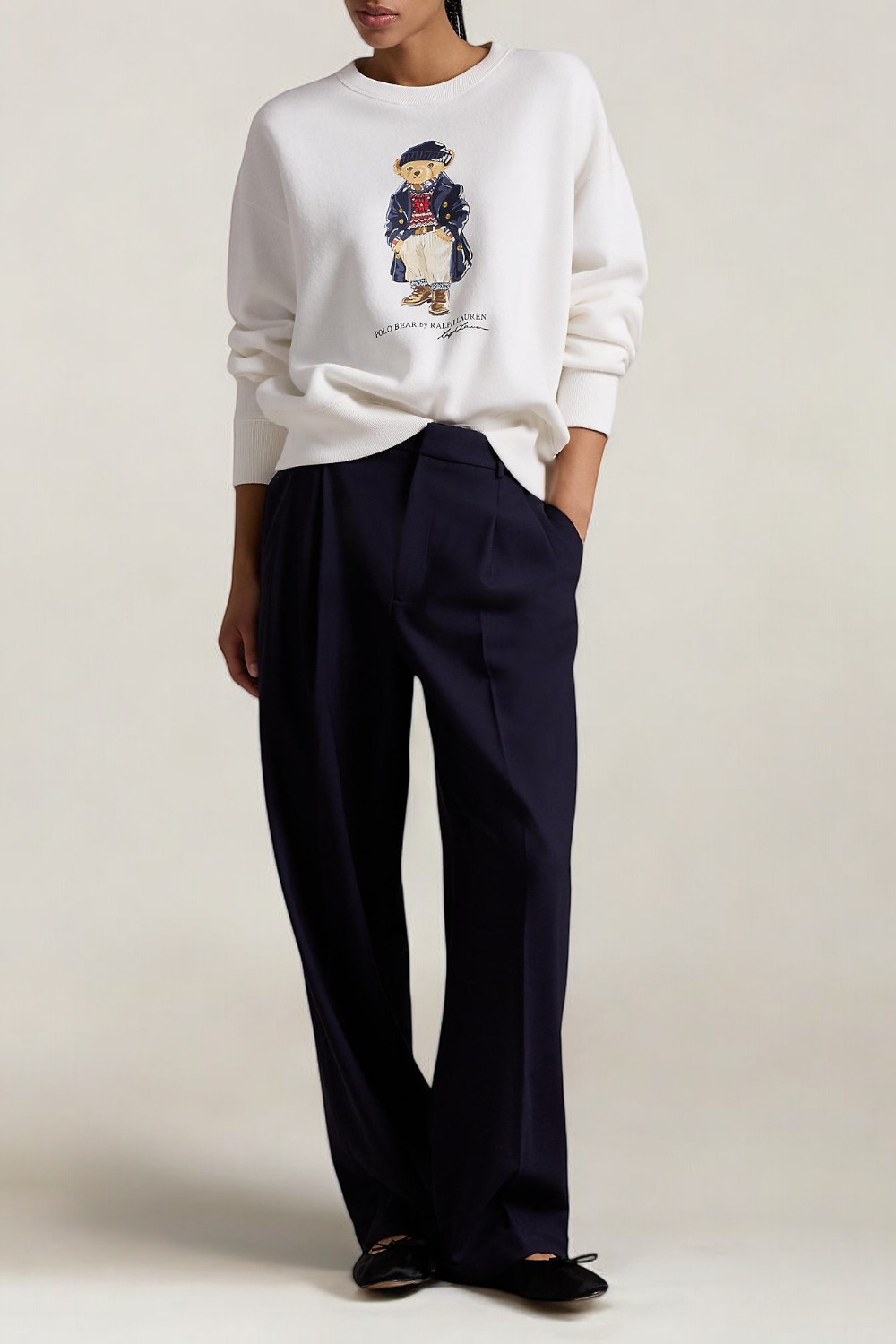 סווטשירט דובי מחמם מבית Polo Ralph Lauren, עשוי פליז נעים ומפנק מכותנה בצבע לבן, עם איור הדובי האייקוני של פולו.