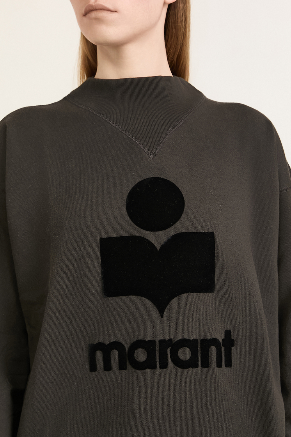 סווטשירט Moby מבית Isabel Marant Etoile עשוי תערובת פוליאסטר ואלסטן בצבע שחור וינטג' בשילוב צווארון ריב גבוה כשלוגו המותג מופיע בחזית.