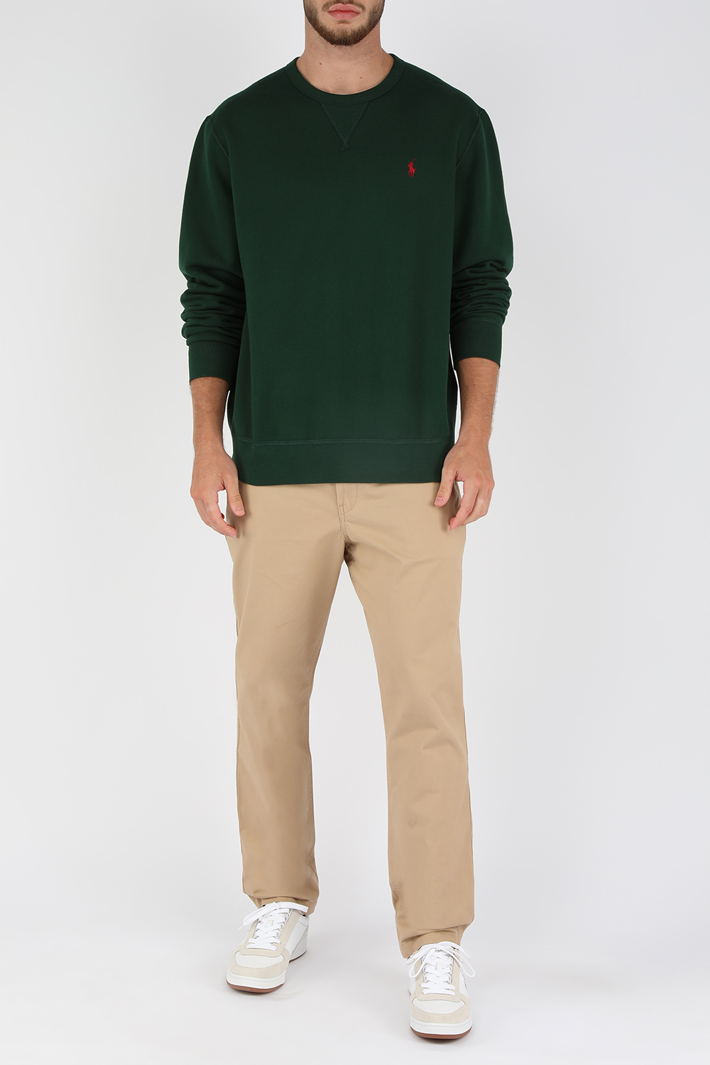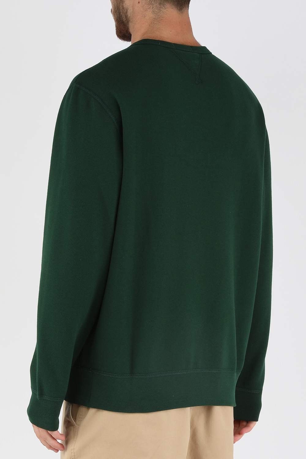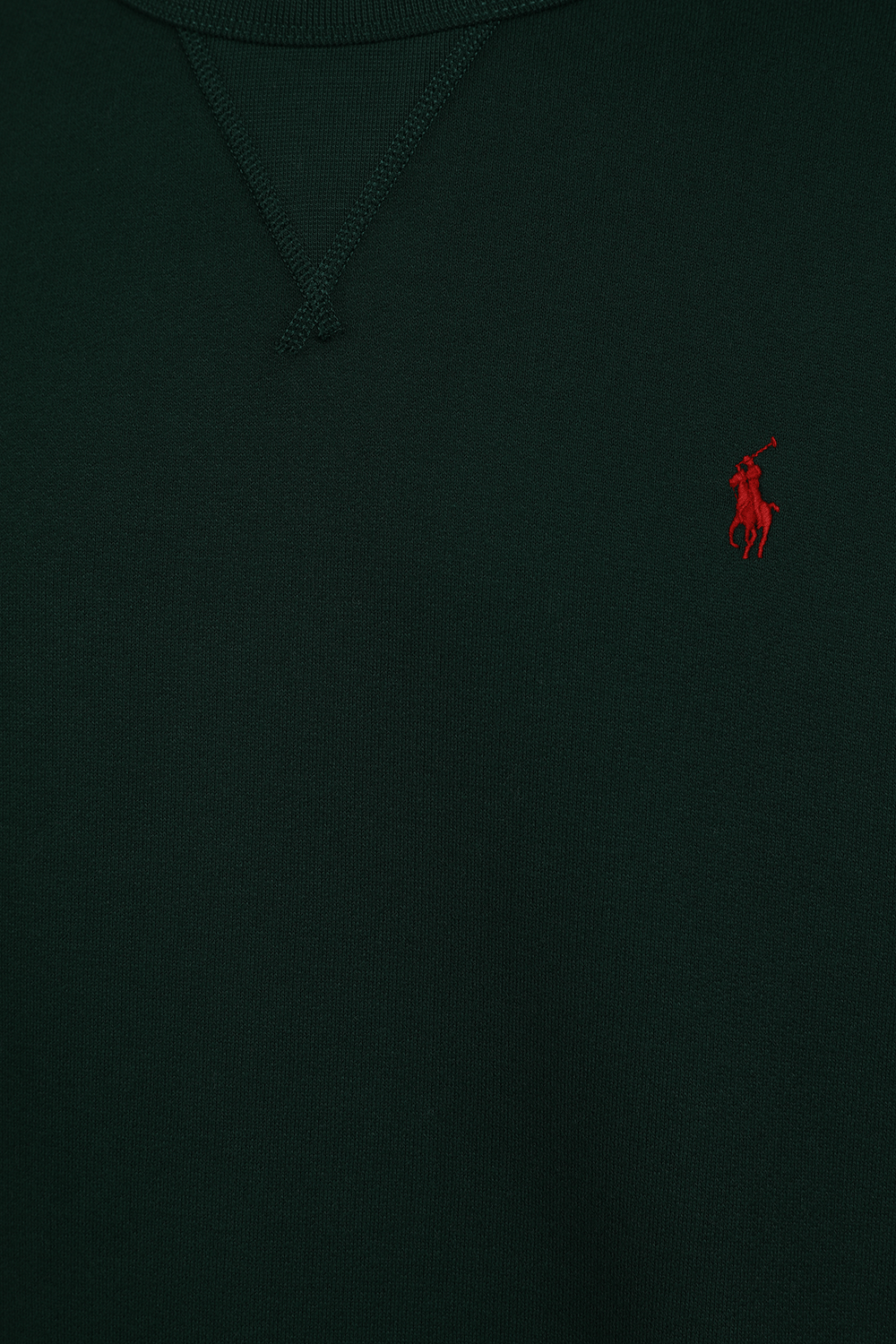 סווטשירט בגוון ירוק בקבוק של בית האופנה האמריקאי Polo Ralph Lauren העשוי מתערובת כותנה איכותית לכדי גזרה נינוחה. עיצובו הנקי והקלאסי כולל אמרות ריב ומפתח צווארון עגול לצד לוגו המותג הרקום בחוט אדום בצדי החזה. פריט בייסיק משודרג שיחתום באיכות מערכות לבוש רבות לשעות העבודה והפנאי.