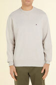 סווטשירט עם צווארון מעוגל מבית Tommy Hilfiger, עשוי תערובת כותנה מחודשת ופוליאסטר בצבע אפור בשילוב רקמת לוגו המותג בצד החזה.