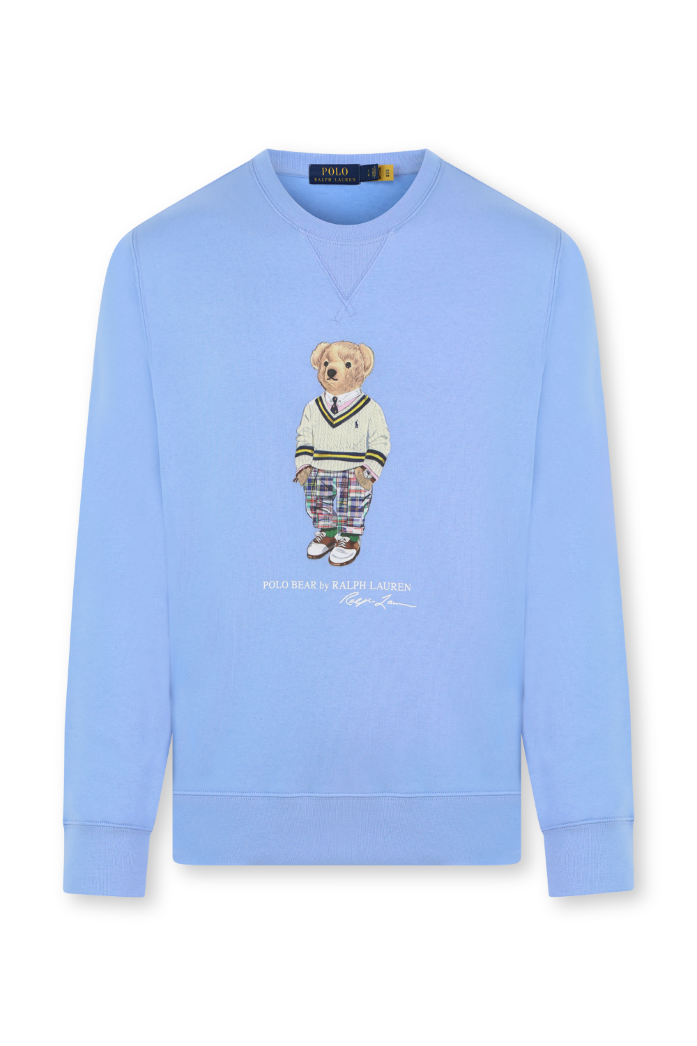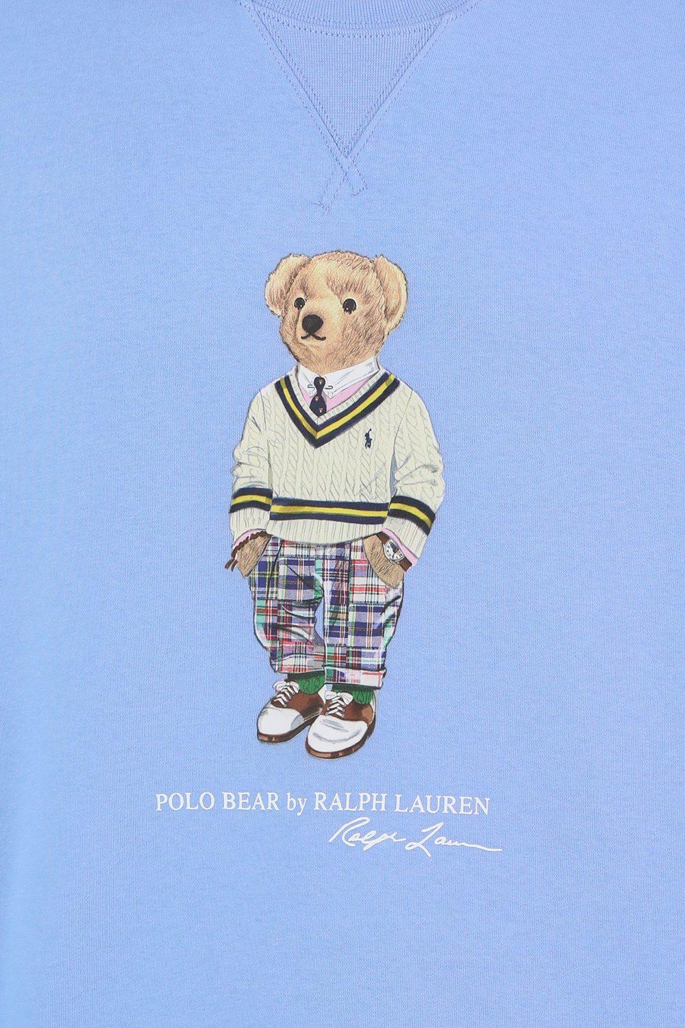 "סווטשירט מבית Polo Ralph Lauren, העשוי כותנה ופוליאסטר בצבע תכלת עם הדפס פולו בר."