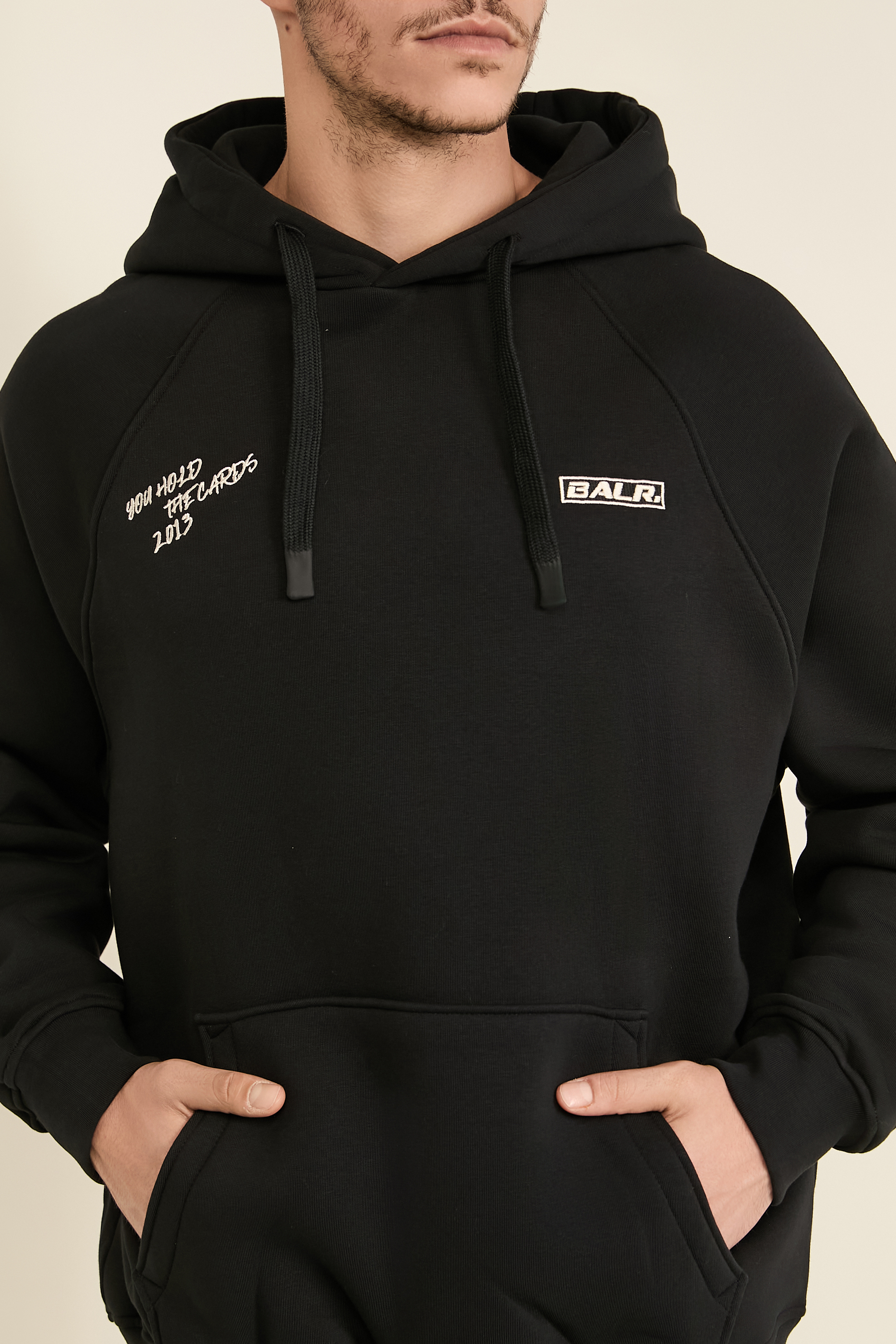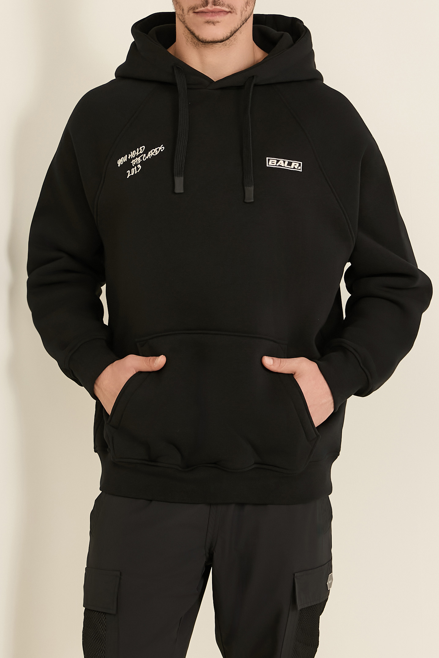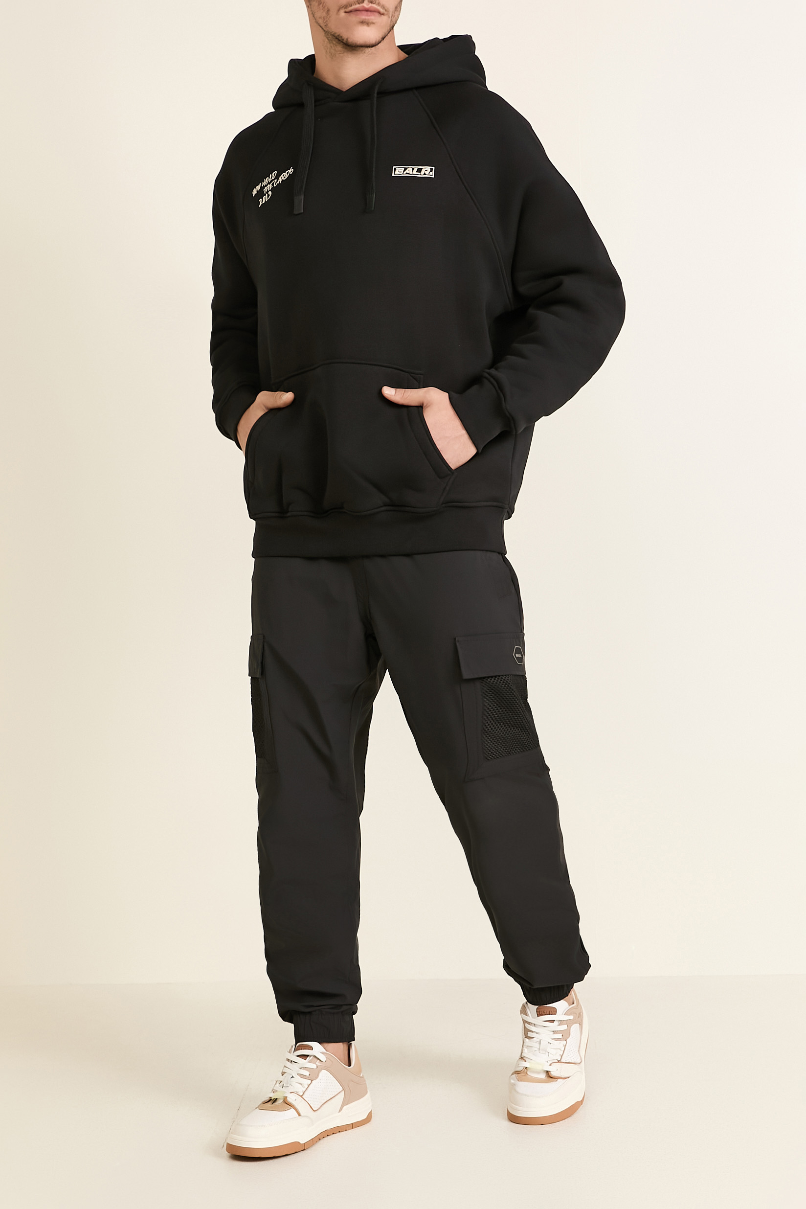 סווטשירט The Club Box מבית Balr בגזרה רחבה. יש לו כיס קנגורו והוא עשוי כותנת פליז נעימה ומחממת בצבע שחור, עם שם המותג בחלקו הקדמי והדפס אחורי.