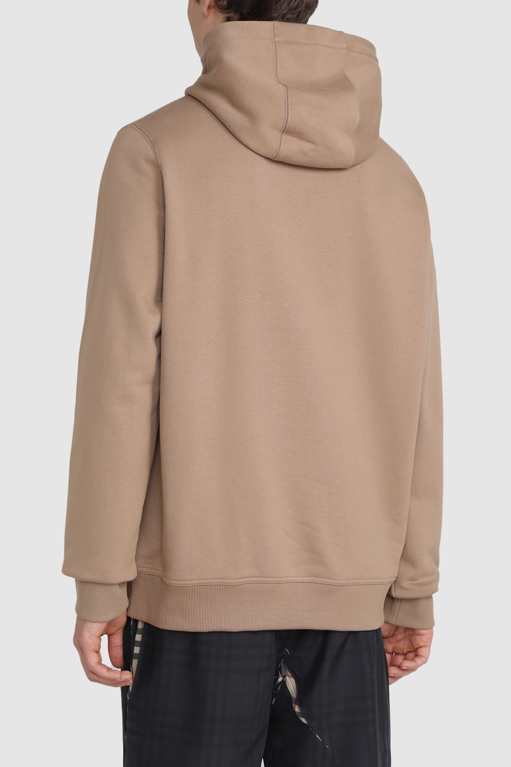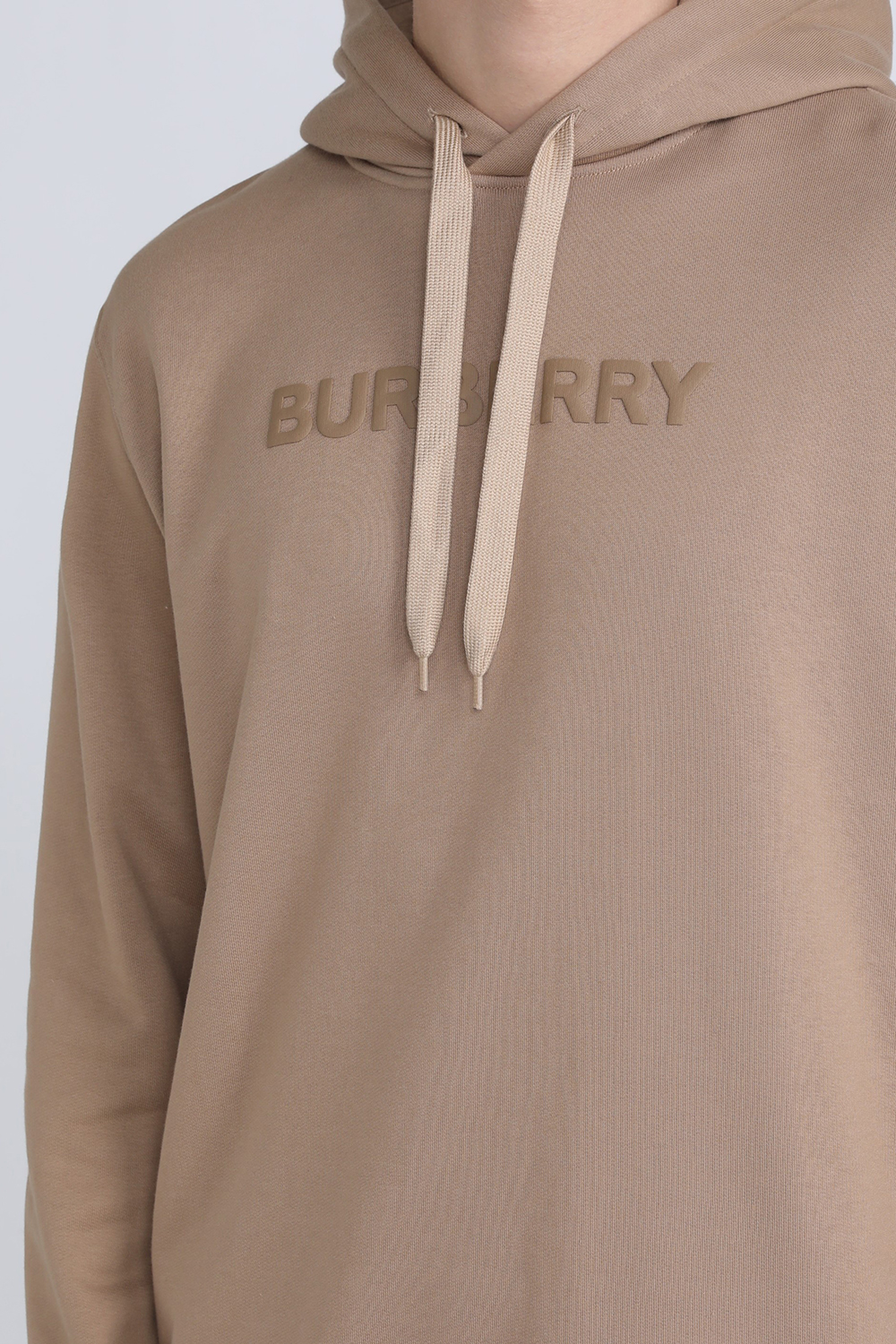 סווטשירט קפוצ'ון מבית Burberry, עשוי כותנה פרנץ' טרי בצבע בז' עם שם המותג בחזית וכיס קנגורו.