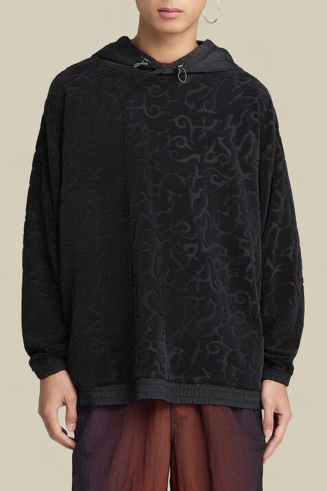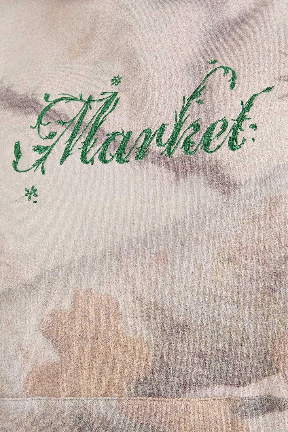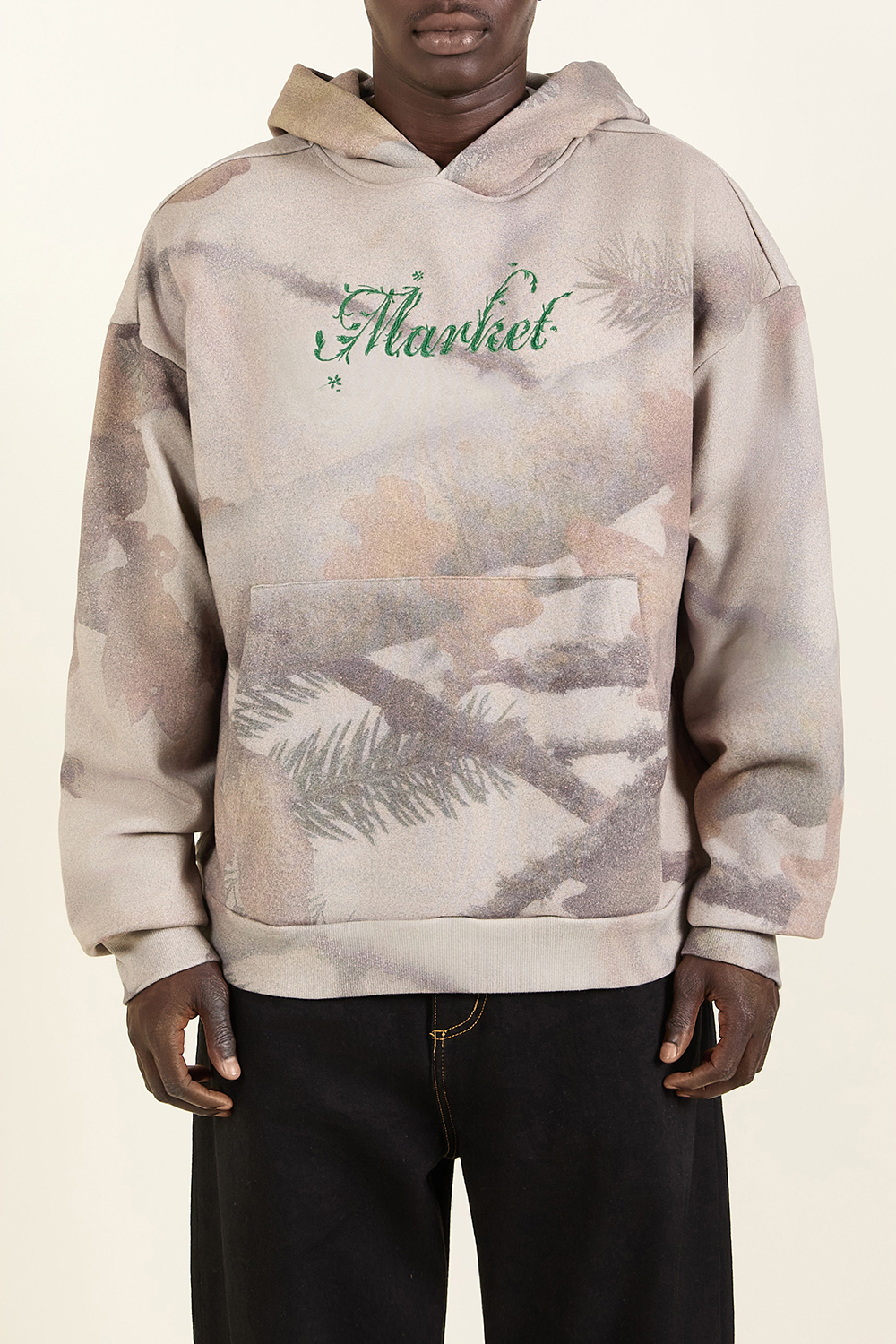 סווטשירט קפוצ'ון מבית Market, עשוי כותנה בהדפס עלים בסגנון קמופלז'.
