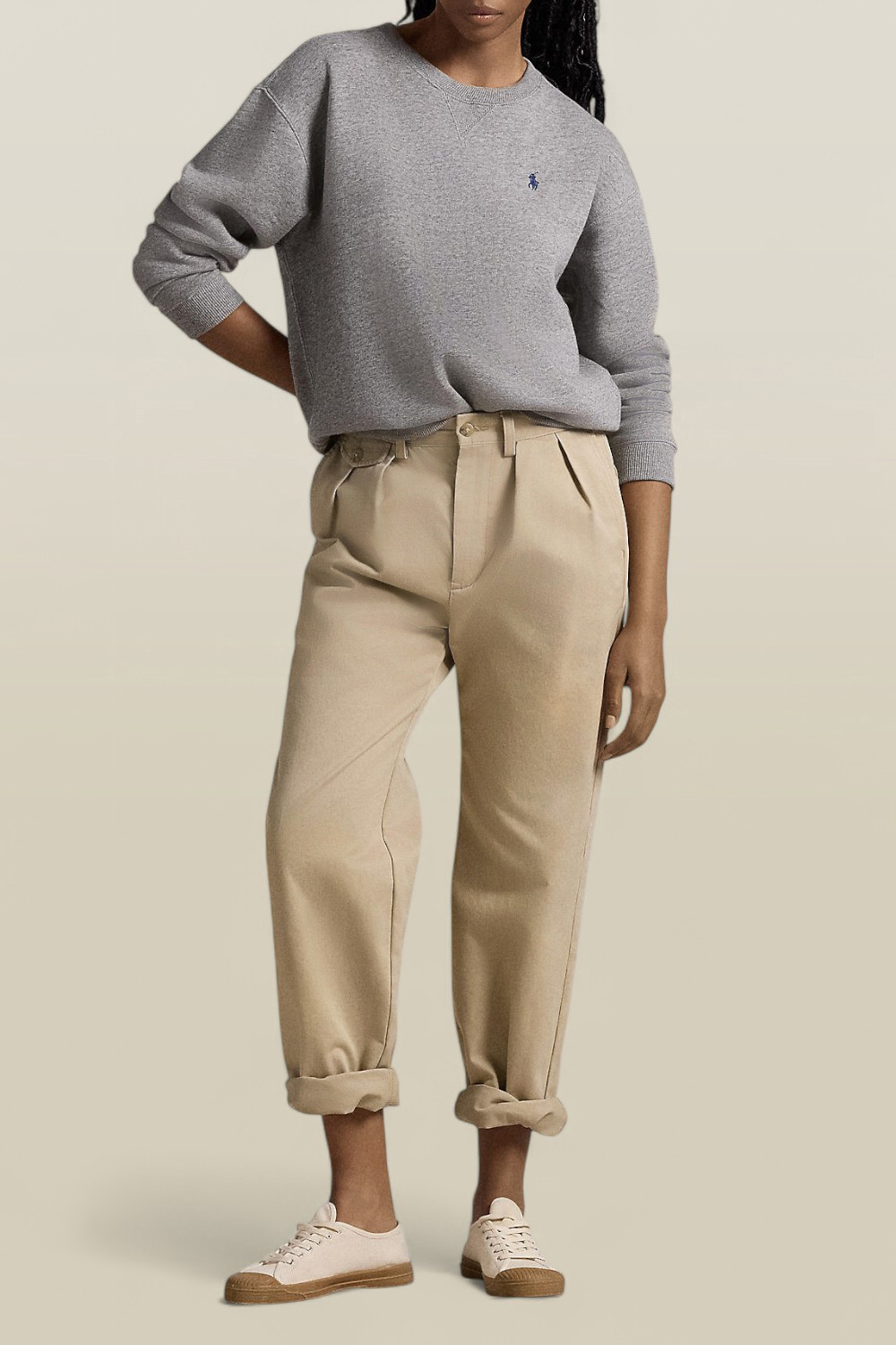 סווטשירט קלאסי מבית Polo Ralph Lauren, עשוי כותנת פליז חמימה ונעימה בצבע אפור. שלבו אותו עם מכנסי ג'וג תואמים וקבלו סט מושלם.