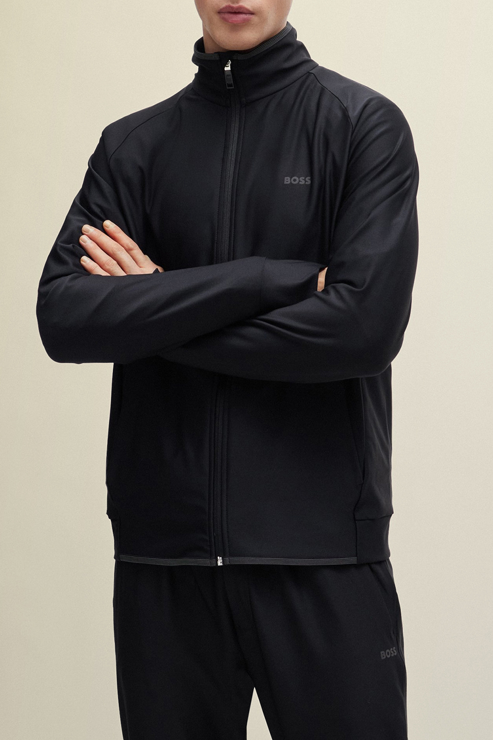 סווטשירט מבית Boss, בגזרה ישרה עשוי ניילון ממוחזר וסטרצ'י בטכנולוגיה המנטרלת ריחות לוואי, עם לוגו מחזיר אור.