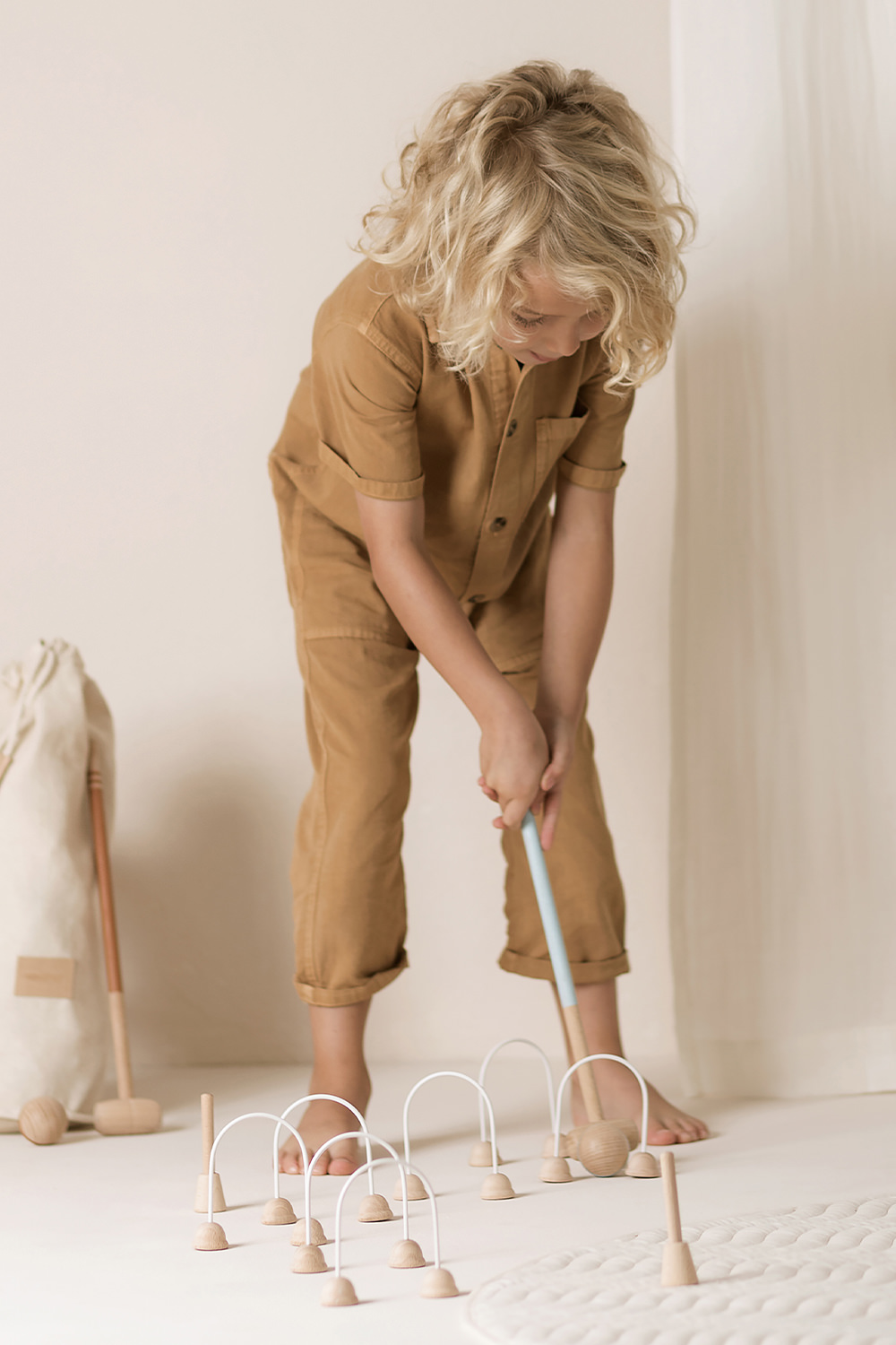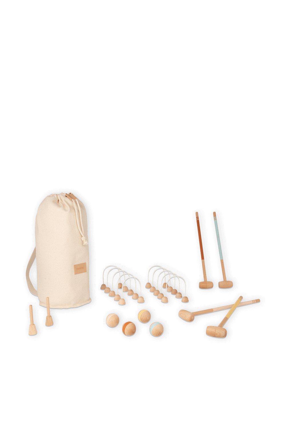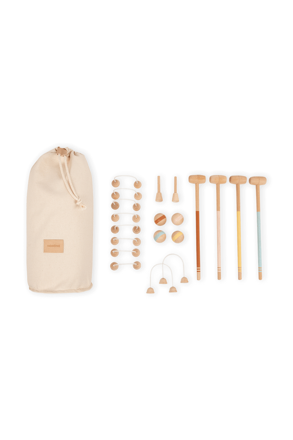 משחק קרוקט מבית המותג Nobodinoz. חלקי המשחק עשויים מעץ בוק קל משקל בצבע עץ טבעי ולא רעיל. כלי המשחק מעוצבים בעבודת יד ומגיעים בתיק בד בצבע בז' נוח לנשיאה.