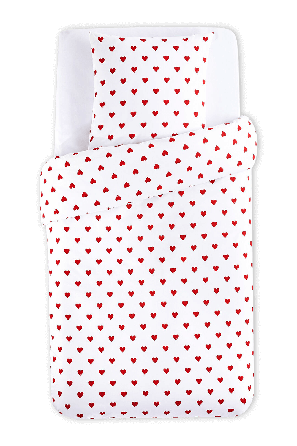 סט מצעים מכותנה בהדפס לבבות אדומים