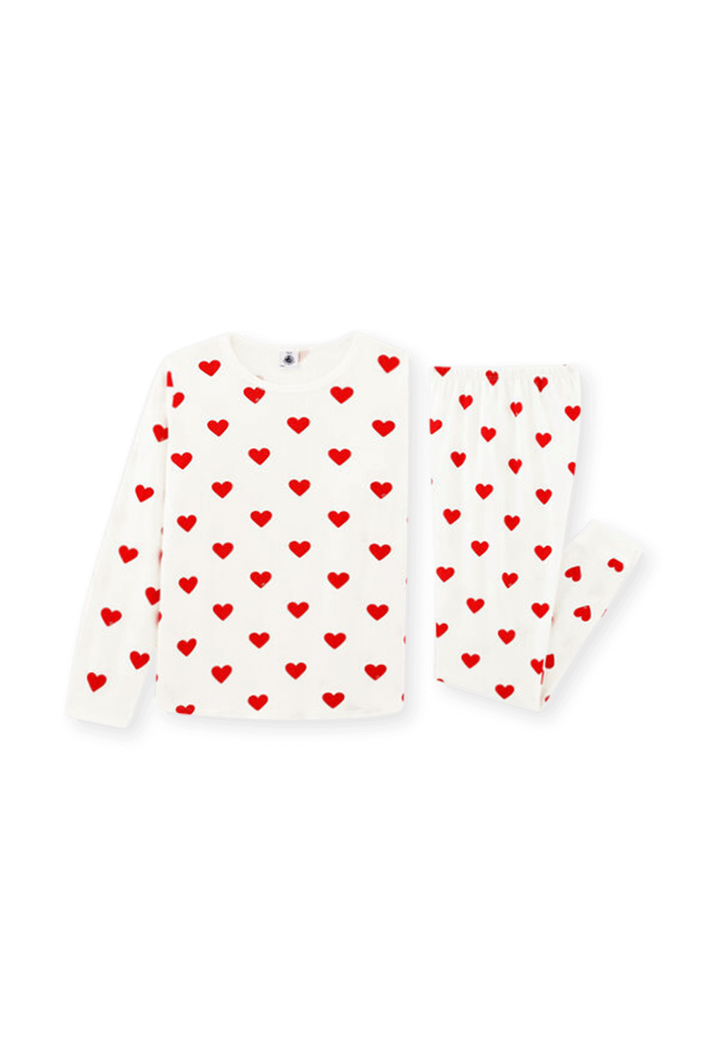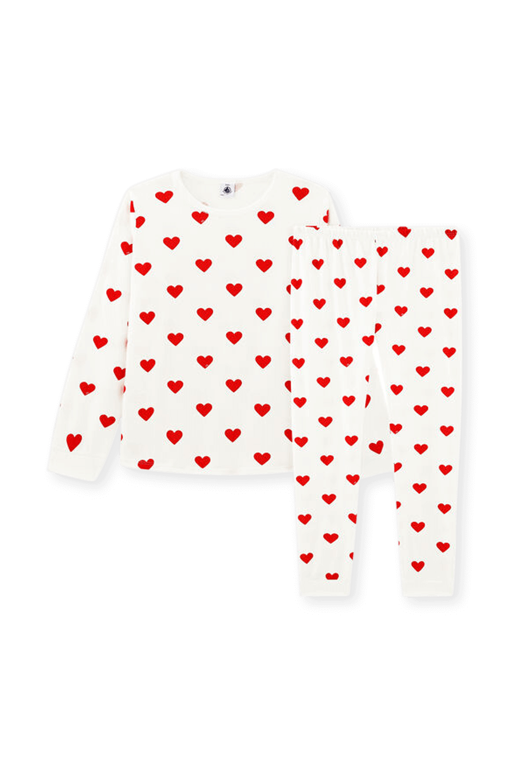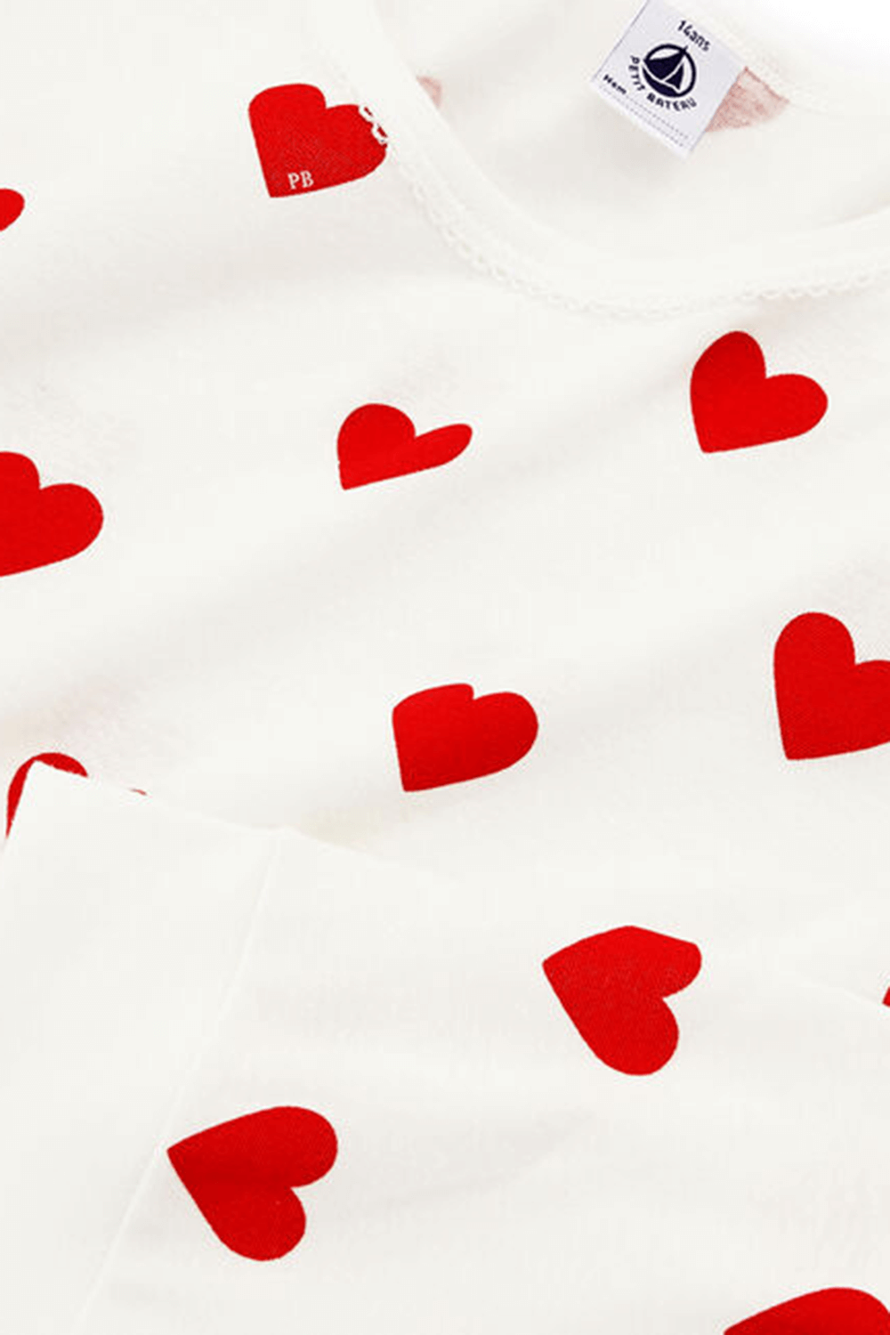 סט פיג'מה ארוך בהדפס לבבות - גילאי 2-5