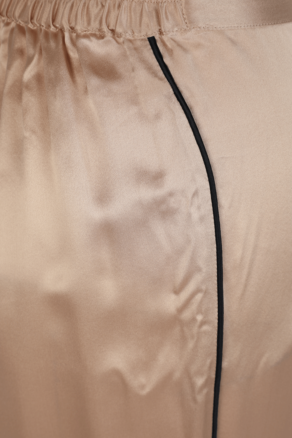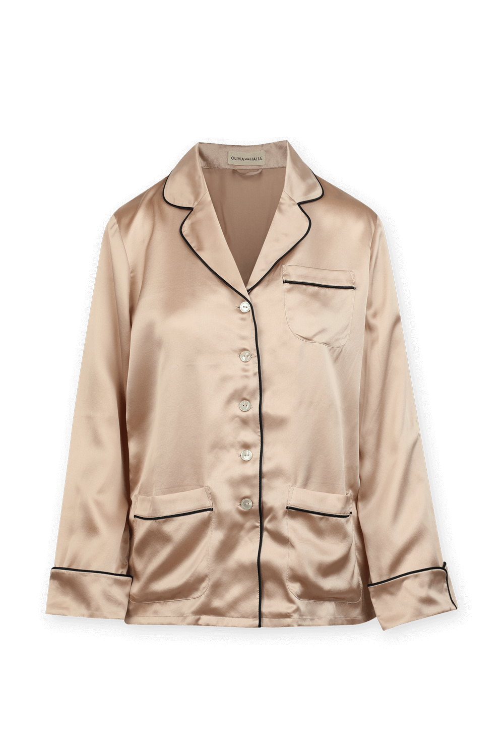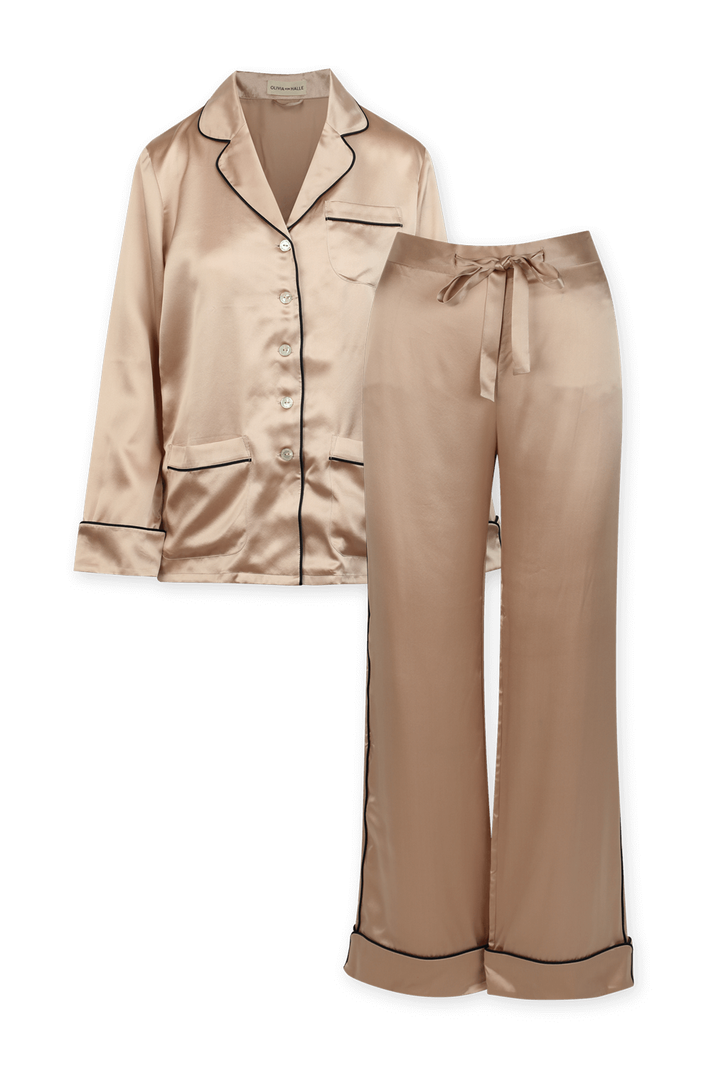 סט פיג`מה יוקרתי עשוי 100% משי מבית המותג הלונדוני OLIVIA VON HALLE מציג חולצה מכופתרת ארוכת שרוולים ומכנסיים בקשירת שרוך. סט נעים וכיפי העשוי ממשי רך ונעים בגוון רוזה עדין ומבריק עם דש בגוון כחול נייבי ושלושה כיסים המעטרים את החזית. המותג מתמקד בביגוד שינה איכותי במיוחד העושה שימוש בחומרים הטובים בעולם ובעיצובים מודרניים עם תשומת לב רבה ודייקנית לפרטים.