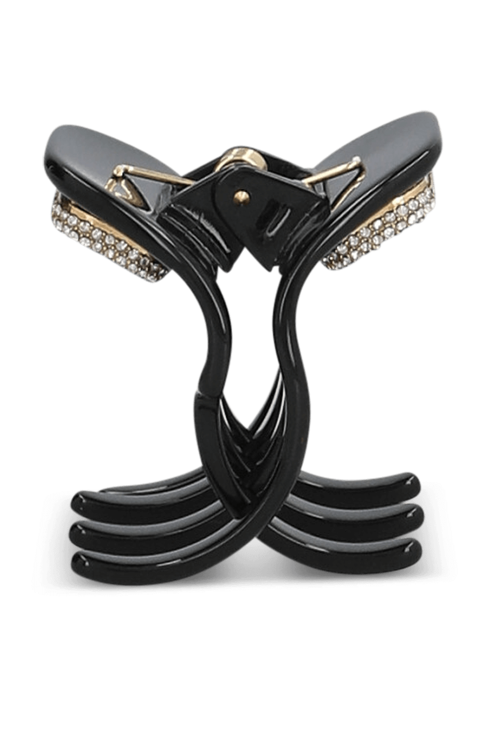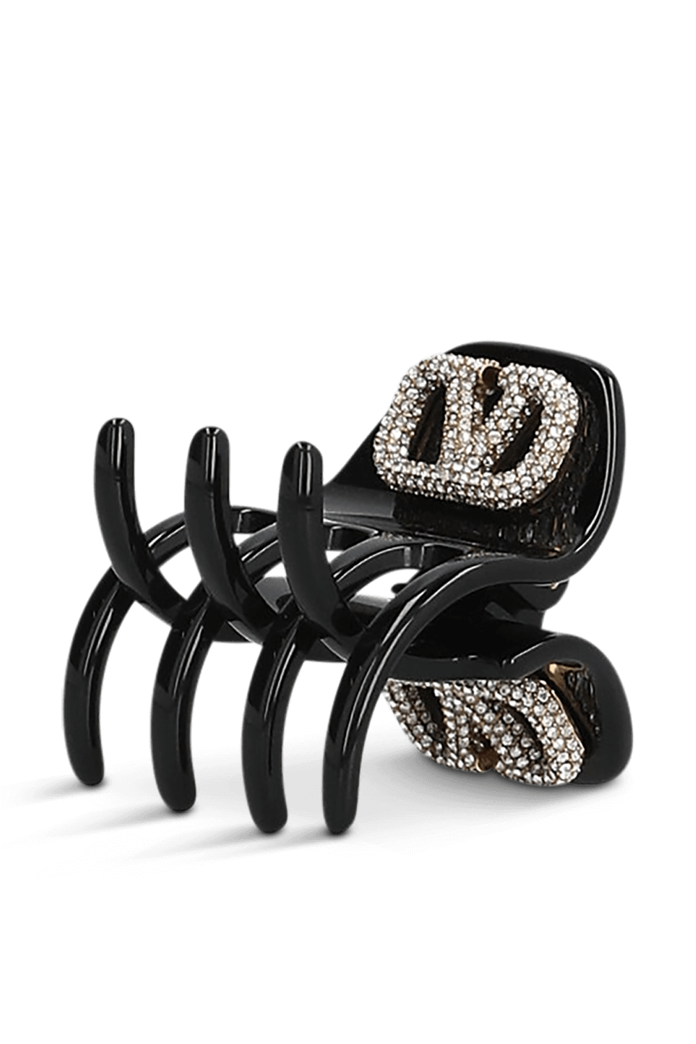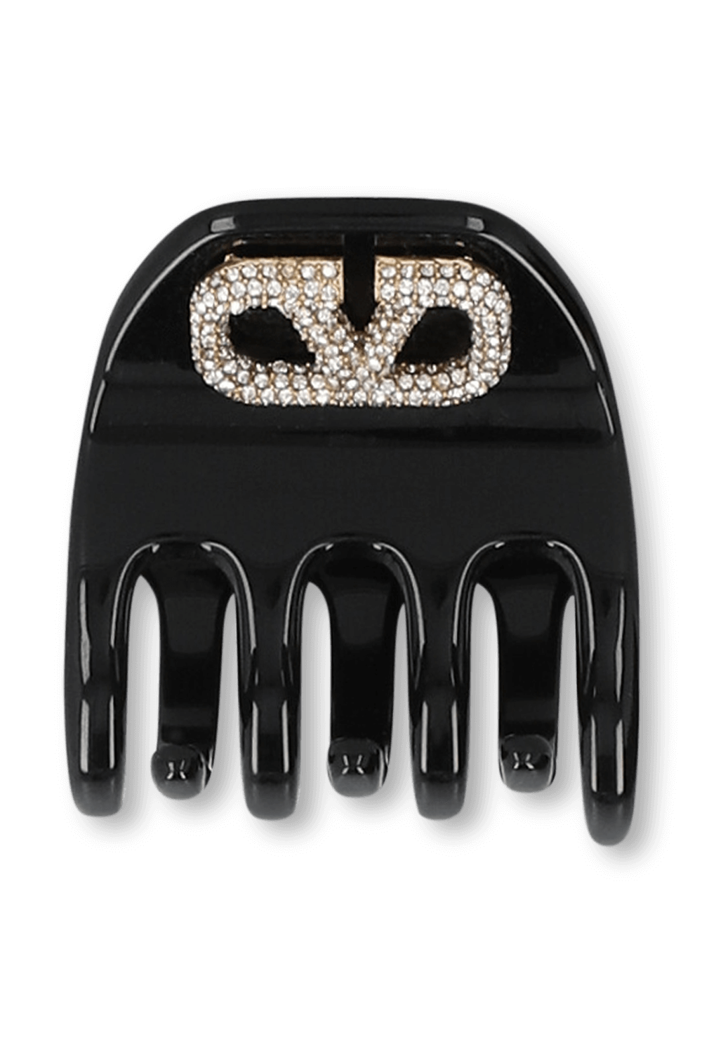 קליפס לשיער מבית Valentino, תוצרת איטליה, בצבע שחור בתוספת לוגו משובץ אבני קריסטל.