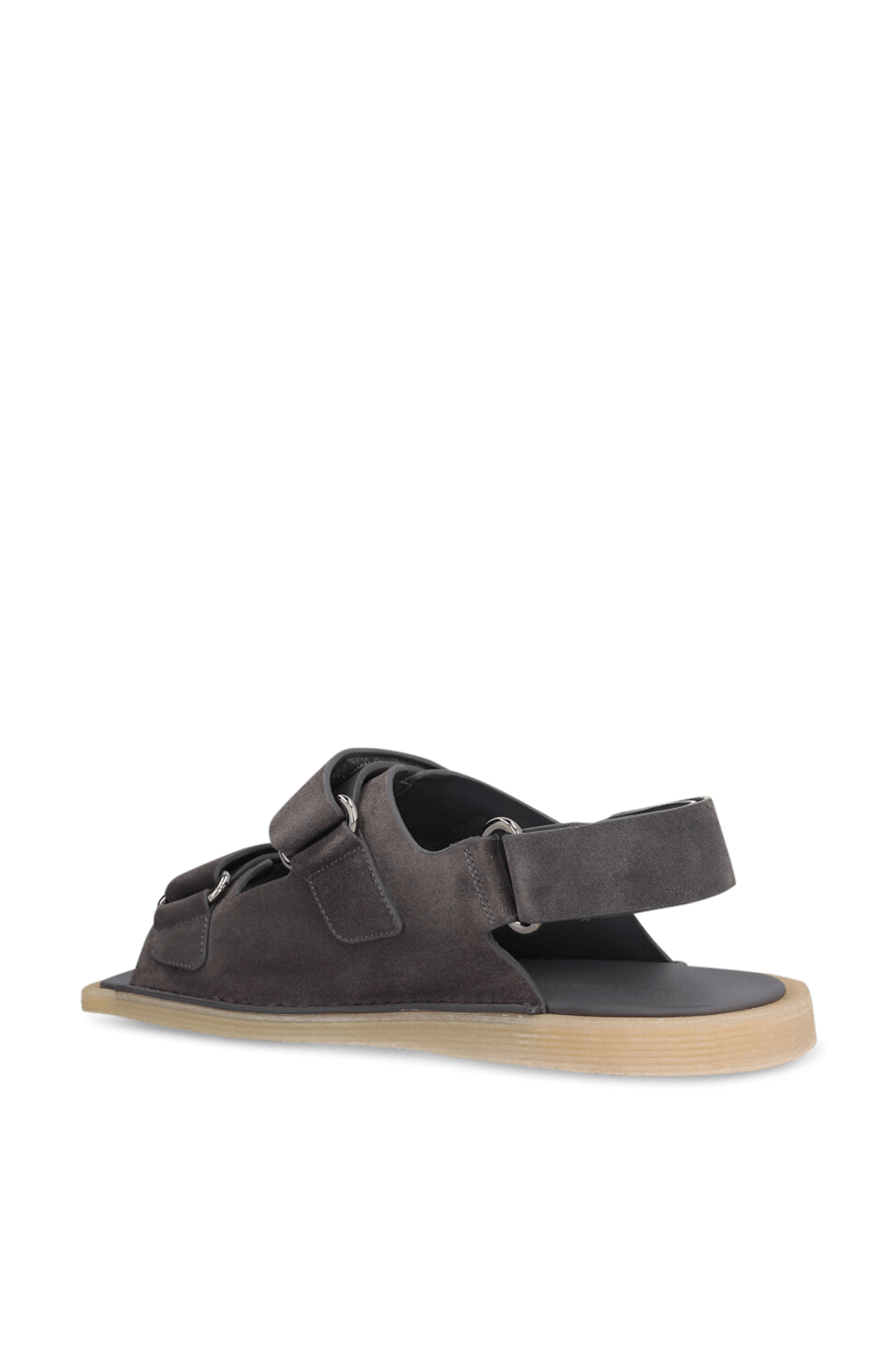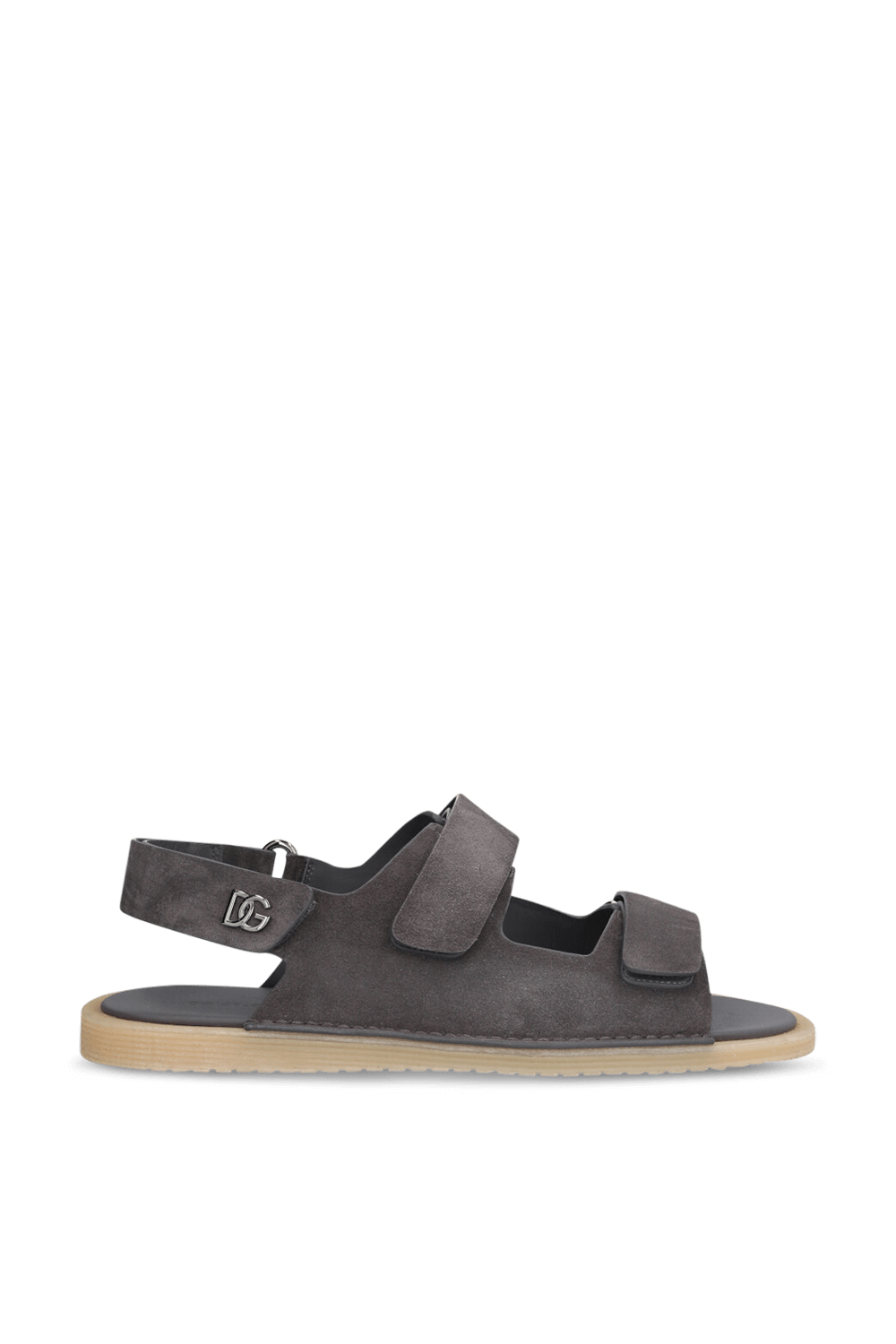 סנדלי סלינג בק Mica מבית Dolce&Gabbana, עשויים זמש בצבע אפור עם שלוש רצועות סקוטש.
