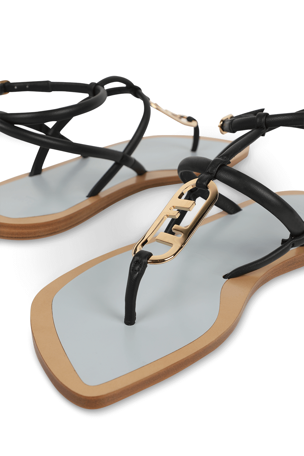 סנדלים אולטרה-סקסיות מבית האופנה האיטלקי פנדי. זהו דגם העשוי 100% עור משובח בגוון שחור עם סוליה מעץ טבעי המעוצב ברצועות דקות החובקות את כף הרגל מקו הבהונות ועד לקרסול. מונוגרמת הלוגו ממתכת בגוון זהב מוברש מתנוססת במרכז הסנדל ומעניקה לו את הטאץ` היוקרתי המזוהה עם הלייבל לכדי פריט נצחי ואלגנטי שיקפיץ לך מגוון לוקים בסטייל מוביל ונחשק.