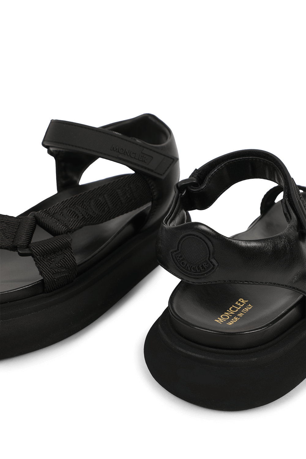 סנדלים בעיצוב רותח מבית מונקלר. סנדלים אלו עשויות עור איכותי בגוון שחור. רצועות עבות עוטפות את כף הרגל יחד עם רצועת קרסול בעלת סגירת סקוטש להתאמה מקסימלית. הסוליה המרופדת והמוגבהת מעניקה אקסטרה רכות וסטייל בכל צעד. סנדלים צ'אנקיות וסופר שיקיות שיהיו מושלמות ללוקים קז'ואלים בימים חמים.