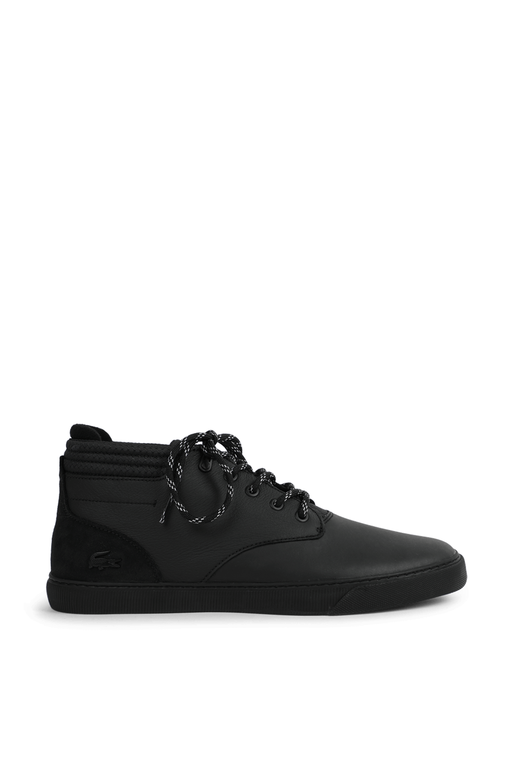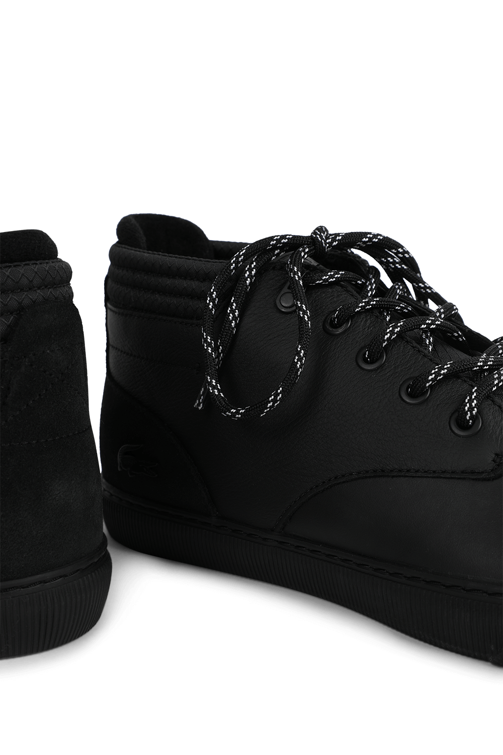 סניקרס מדגם Esparre Chukka בעיצוב המותג הצרפתי היוקרתי Lacoste אשר עשויים משילוב של עור זמש איכותי עם גומי ופוליאתן חזקים ועמידים בגוון שחור. לפריט סגנון מינימליסטי סופר שיקי בגובה קו הקרסוליים.