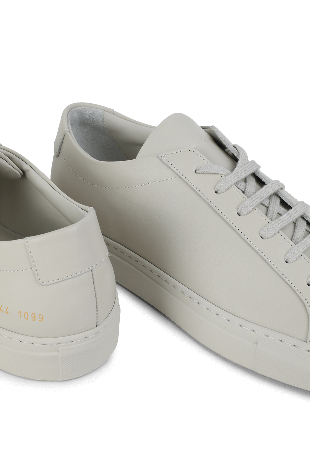 "נעלי הסניקרס של מותג הנעליים Common Projects הן הבחירה האולטימטיבית לחובבי סגנון הרחוב בשילוב אופנה גבוהה. הנעליים עשויות 100% עור בתפירה איכותית בגוון שמנת קלאסי, כאשר תיפורים מינימליסטיים מעניקים להן מראה חד ויוקרתי. כיתוב מספרי ממותג ומוזהב חותם את סגנונן האלגנטי של הנעליים.