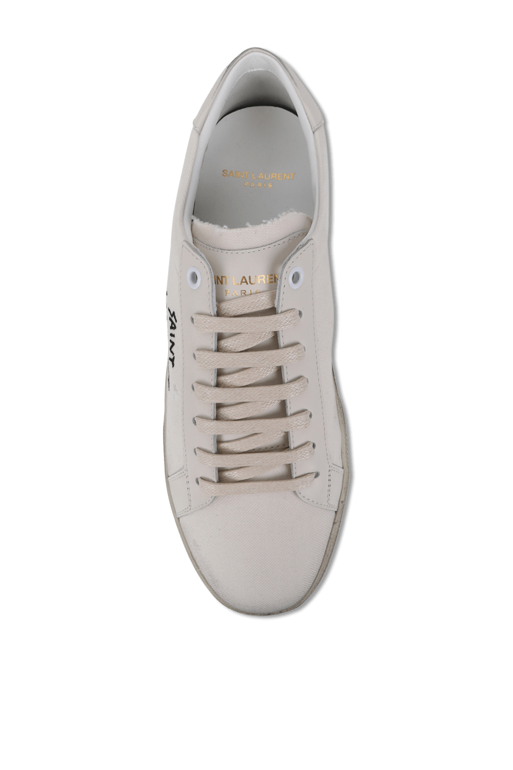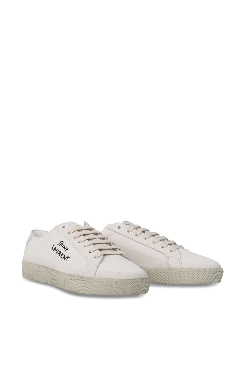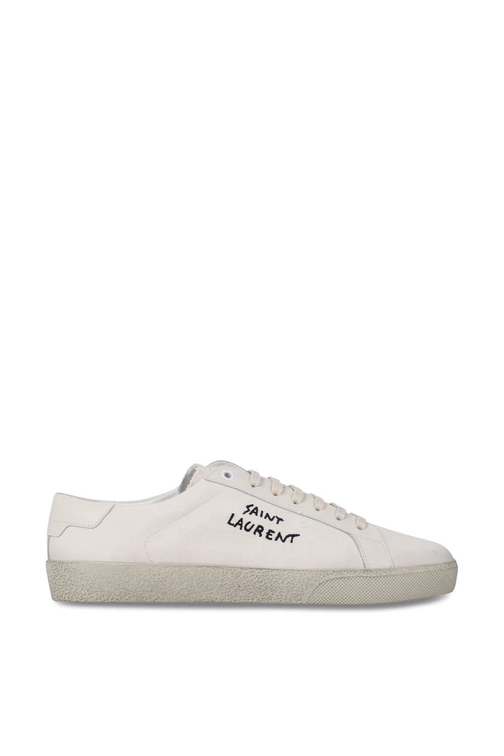 נעלי סניקרס אופנתיות בעיצוב בית האופנה הצרפתי Saint Laurent. זהו דגם בגזרה נמוכה העשוי 100% כותנה איכותית בגוון אוף-וויט עם סוליה שטוחה בגוון בז העשויה גומי רך ונוח להליכה. על גפתו רקומה חתימת שם המותג בגוון שחור. שלבי את הנעליים עם ג`ינס כחול וטי-שירט לבנה ליצירת מראה קלאסי מלא בשיק.