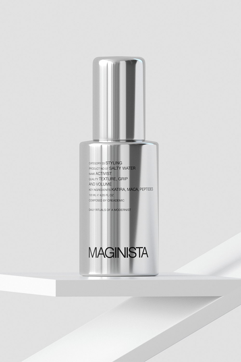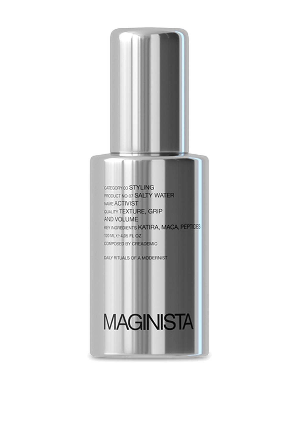 ספרייActivist Saltwate r לשיער מבית Maginista ליצירת שיער גלי, מבנה ונפח נועז, אידיאלי לתסרוקות. ניתן לשימוש על שיער רטוב או יבש. מתאים לכל סוגי השיער. מבוסס על פורמולה טבעונית. מכיל 94.76% רכיבים טבעיים* 5.24% רכיבים מעובדים*.